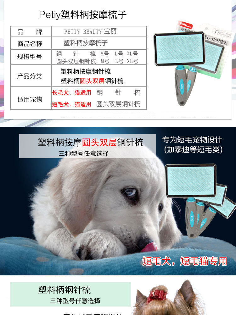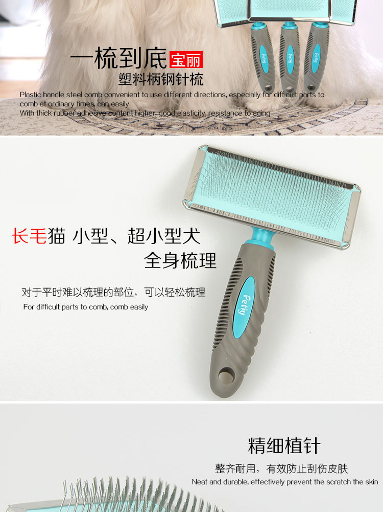 Petiybeauty/폴라로이드 플라스틱 핸들 둥근 비드 헤드 라이트 바늘 빗 긴 머리 개 고양이 오픈 매듭 풀 머리 솜털 빗 브러시스토어 가기