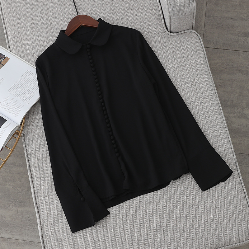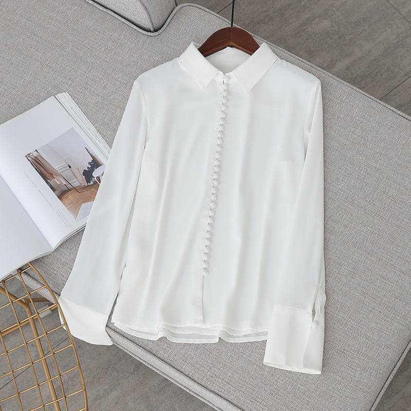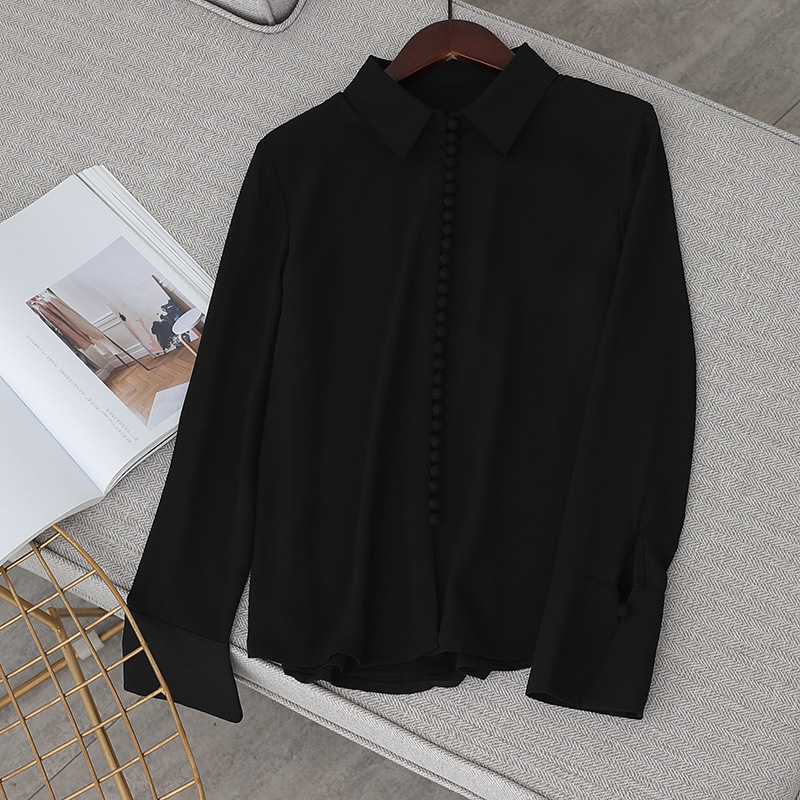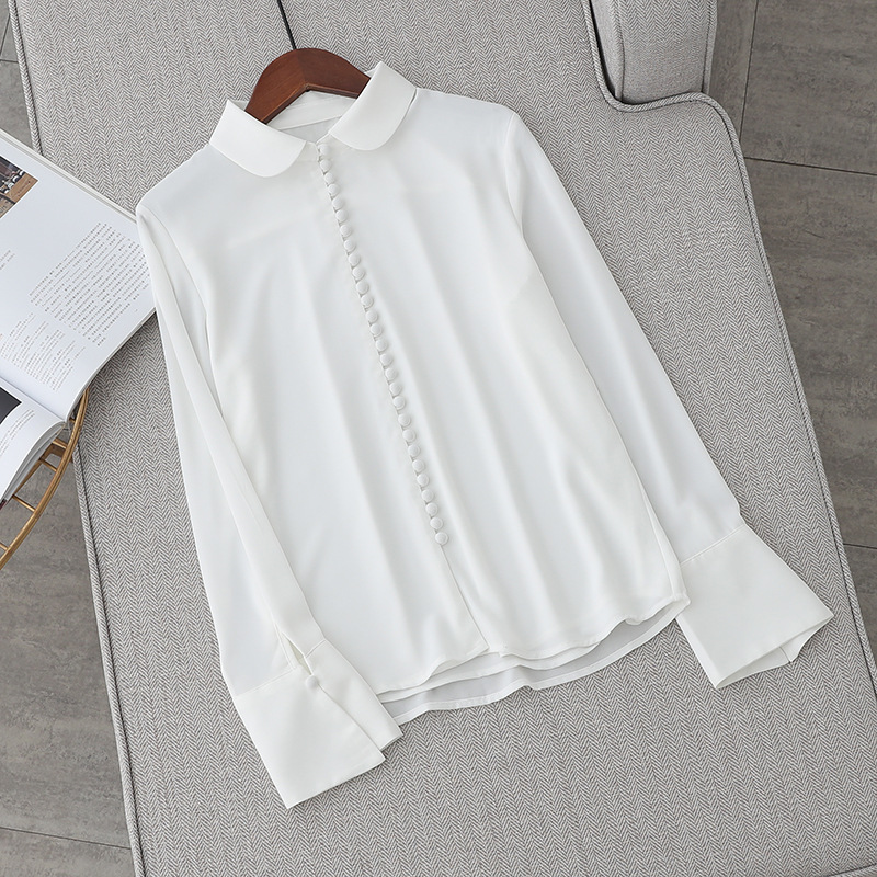 봄 여름 황금비서 같은 스타일의 복고풍 버클 시폰 패셔너블한 긴팔 셔츠, 여성스러운 디자인의 니치 탑스토어 가기