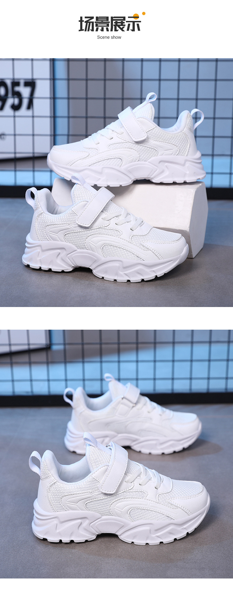 흰색 어린이 운동화 소녀 흰색 신발 소년 운동화 가죽 메쉬 통기성 소년 여행 학생 웨이브 신발스토어 가기