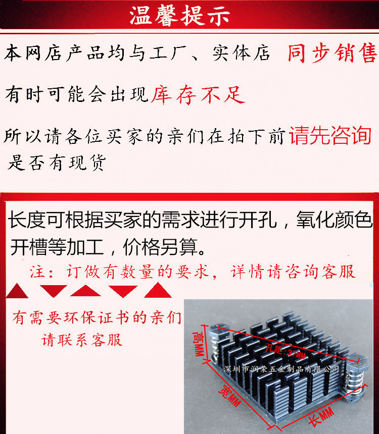 散热片的长度可以根据客户要求任意定制,可按照客户的需求氧化颜色、任意开孔。(注:宽度和高度是固定的,只能改变长度。)