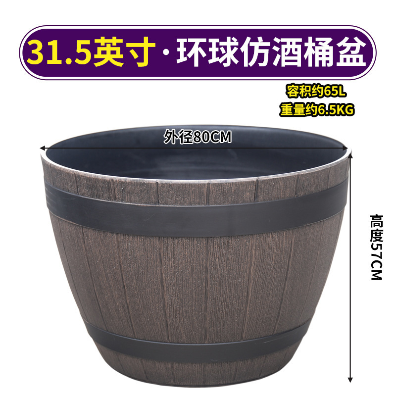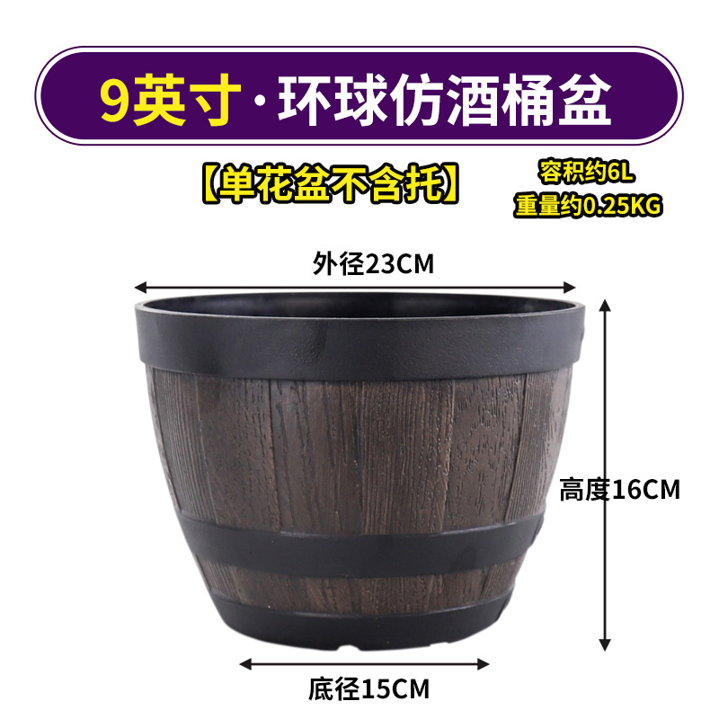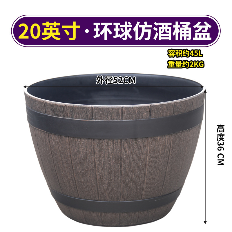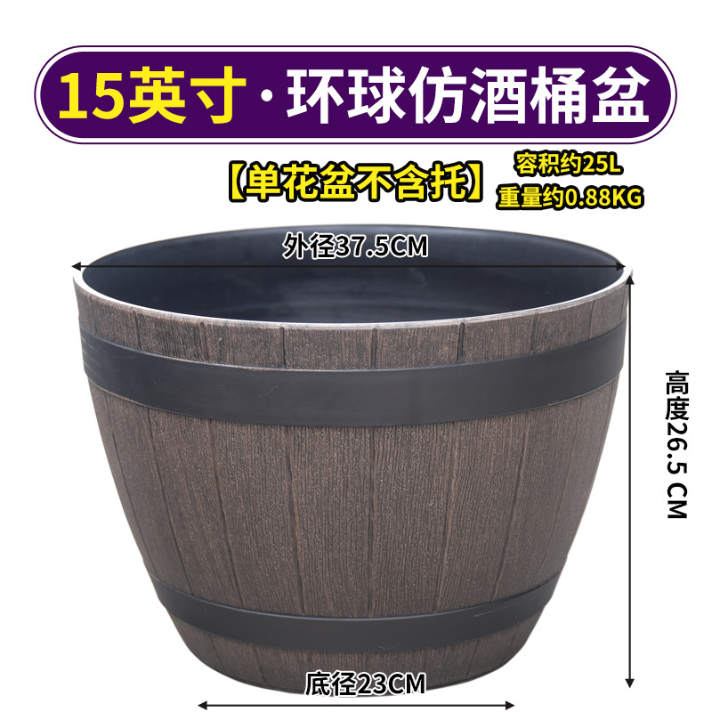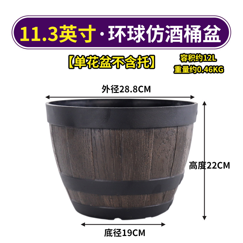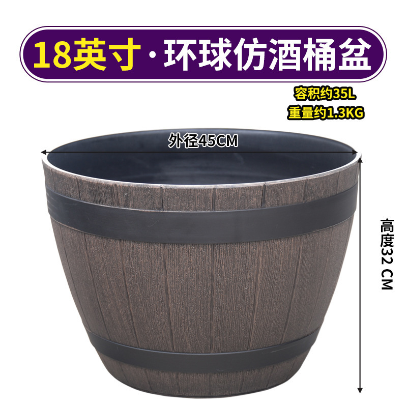 环球仿木花盆铁树花盆树脂花盆,复古酒桶造型花盆,树脂材质,使用寿命长。