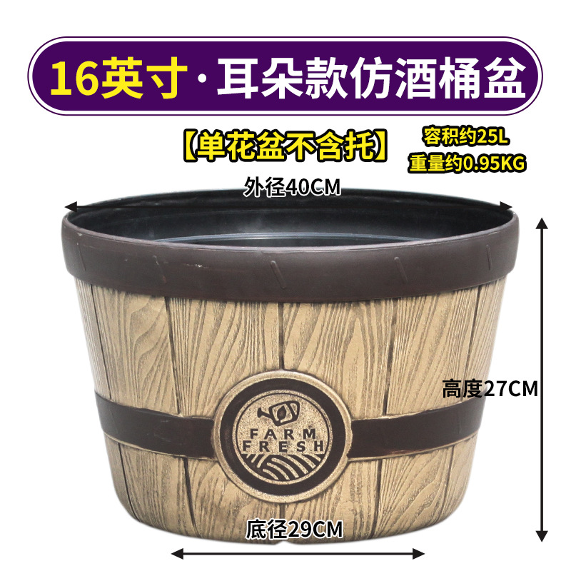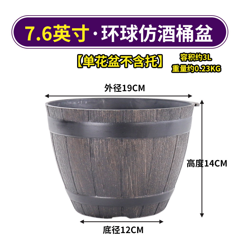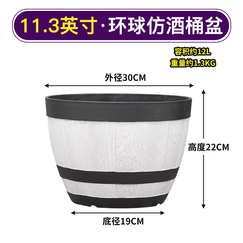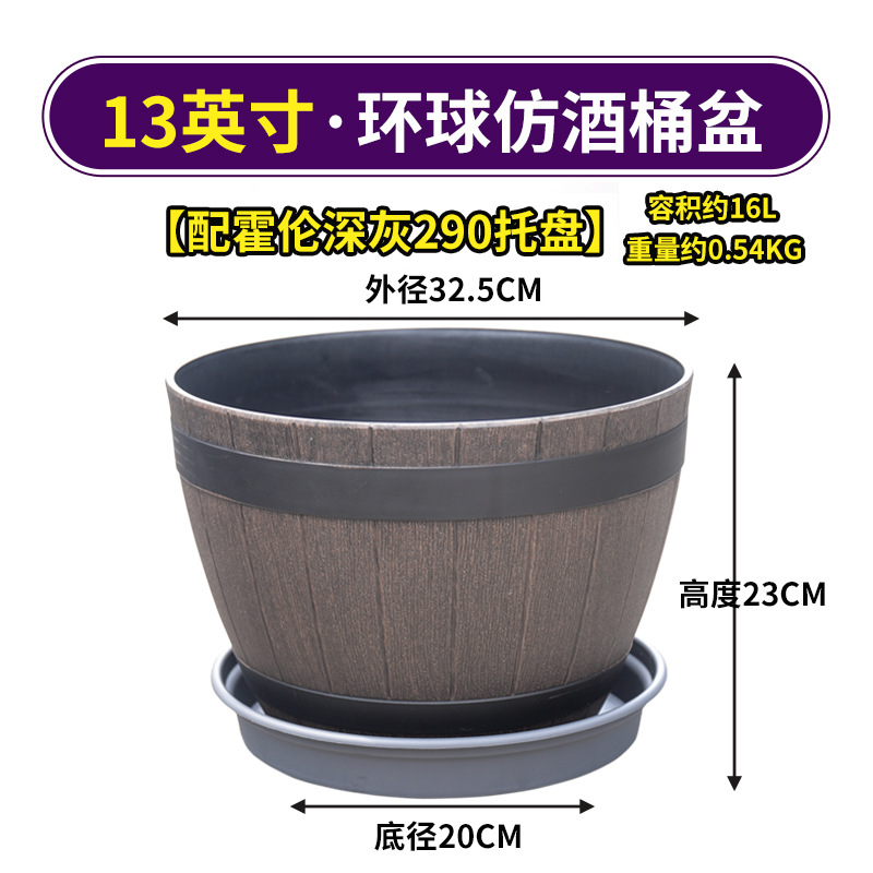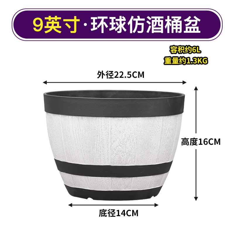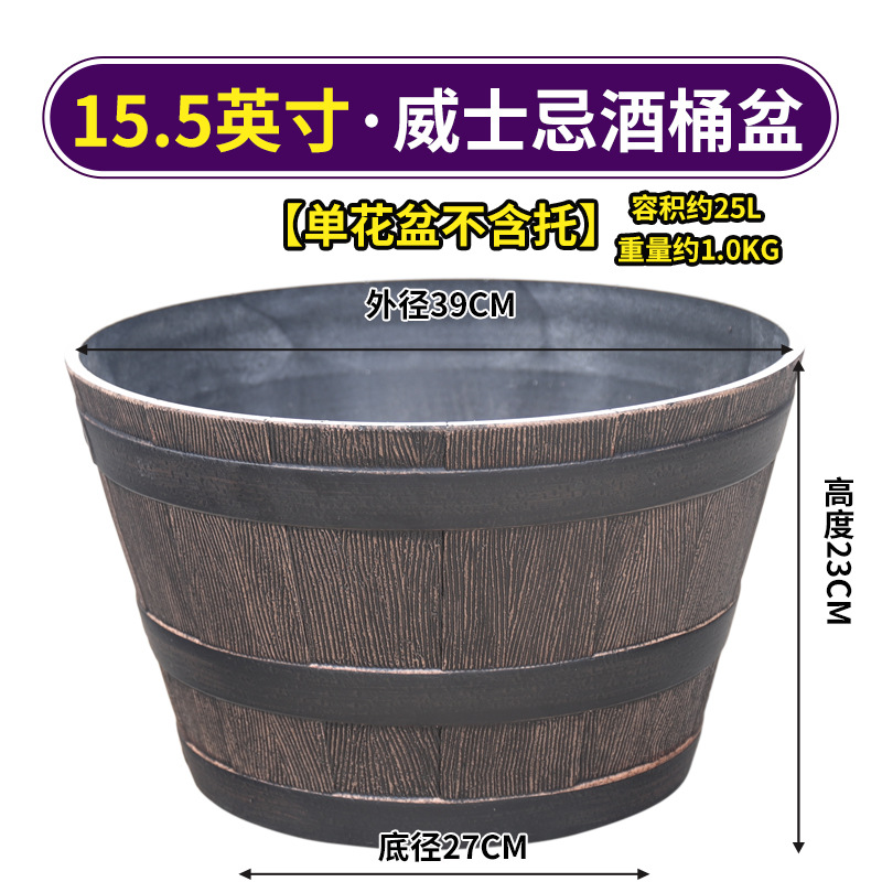 环球仿木花盆铁树花盆树脂花盆,复古酒桶造型花盆,树脂材质,使用寿命长。