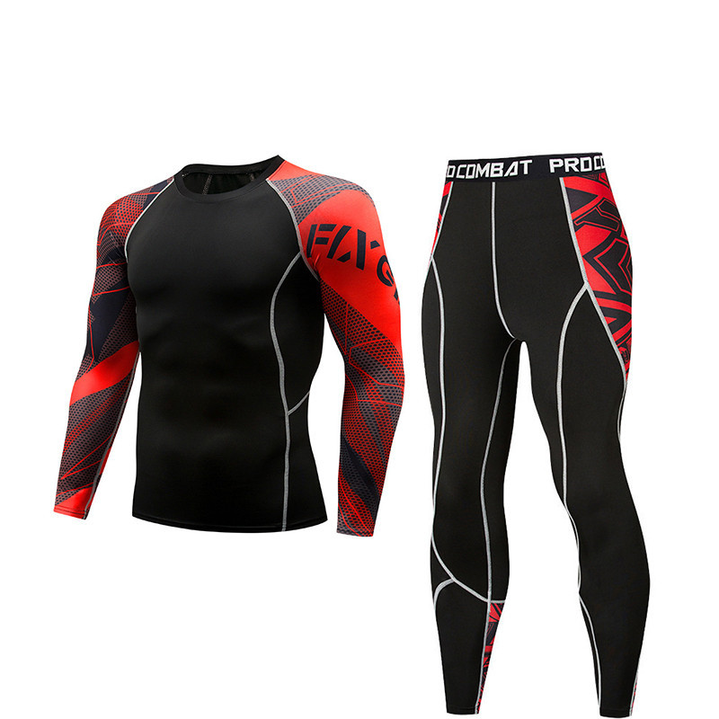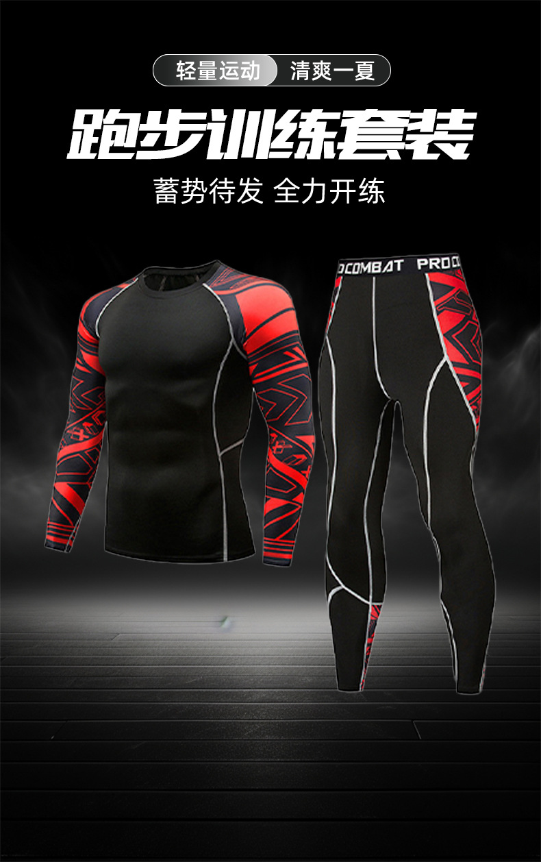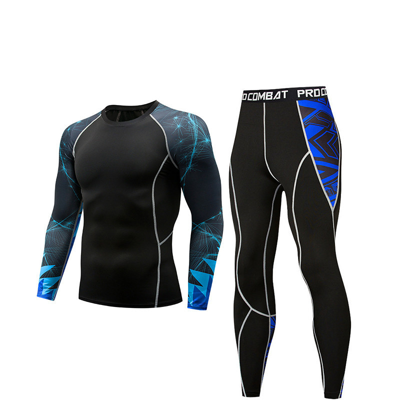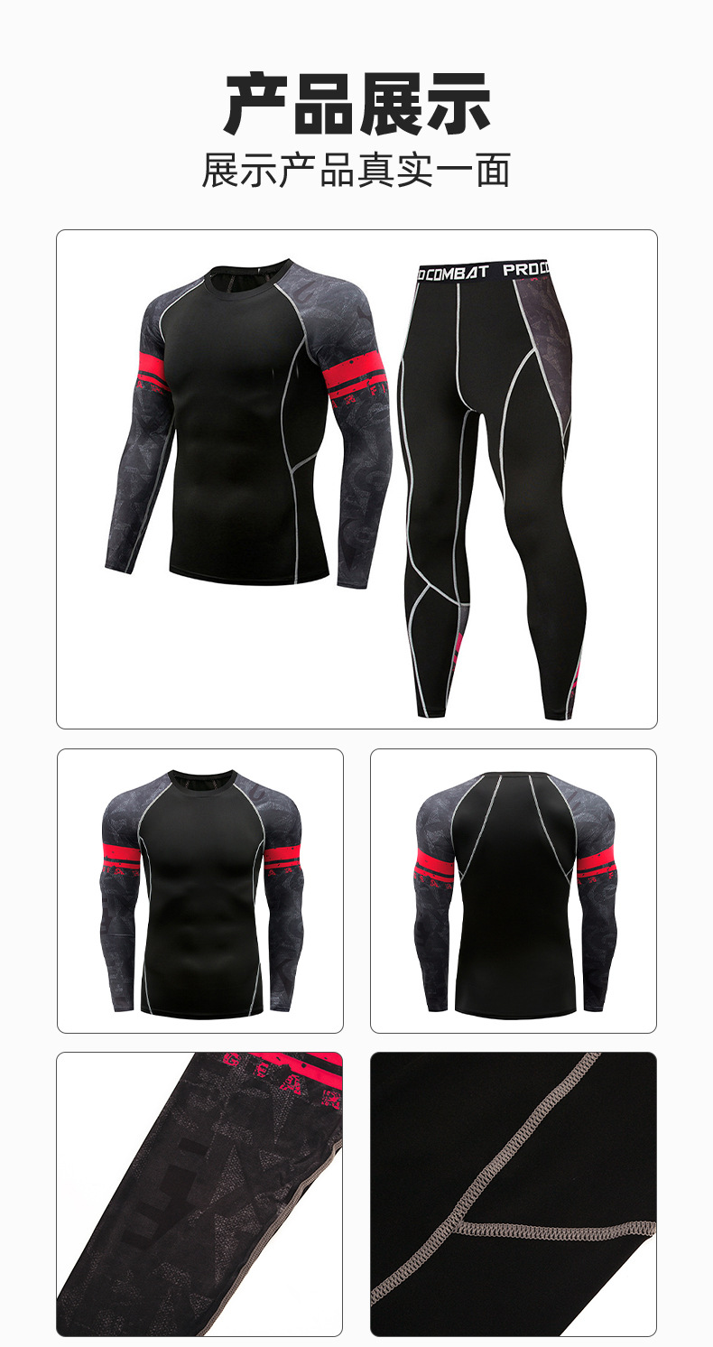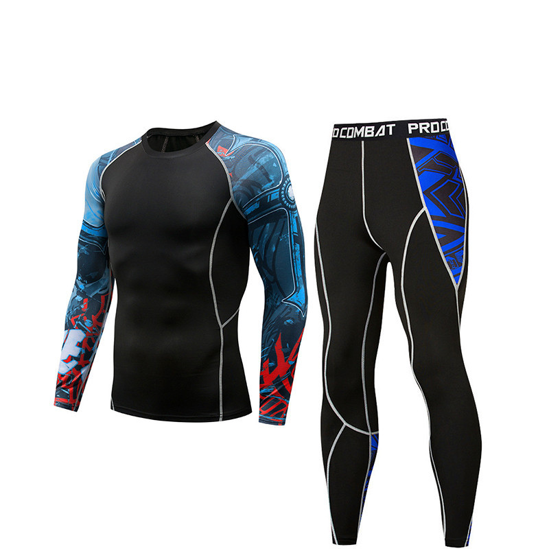 스포츠 꽉 남자의 세트 긴 소매 스포츠 피트니스 속건 티셔츠 속건 탄성 PRO 피트니스 세트