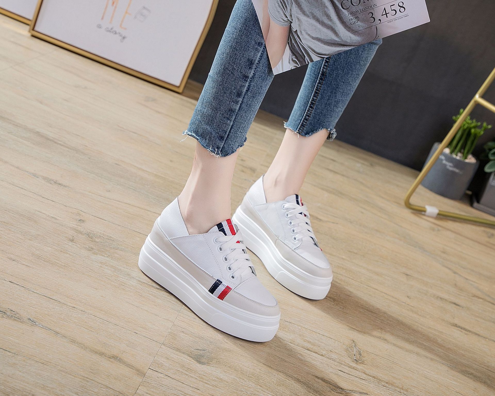 신발 여성용 새로운 두꺼운 밑창 흰색 신발 내부 높이 증가 신발 한국식 모든 매치 가죽 캐주얼 스몰 사이즈 여성 신발 31 32 33스토어 가기