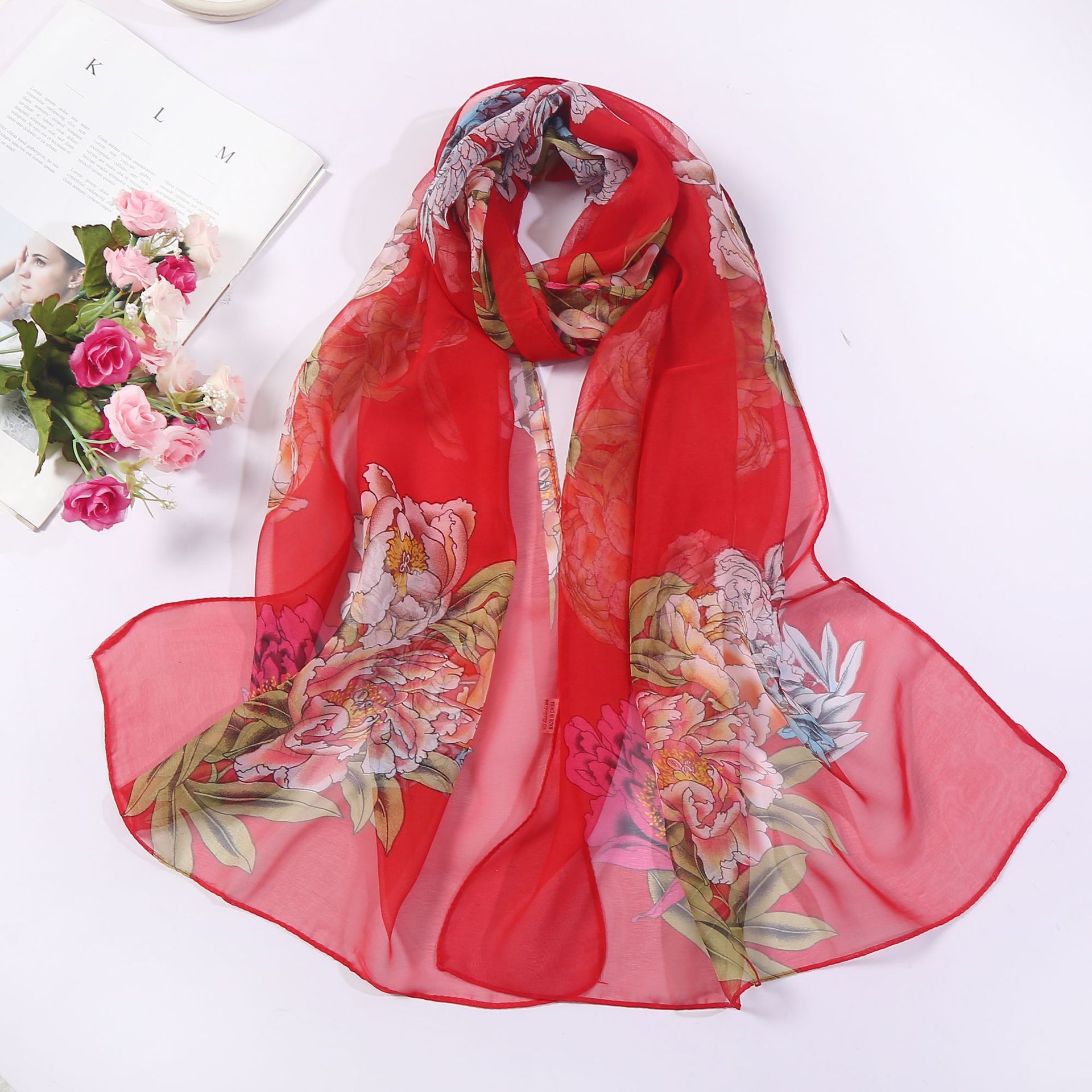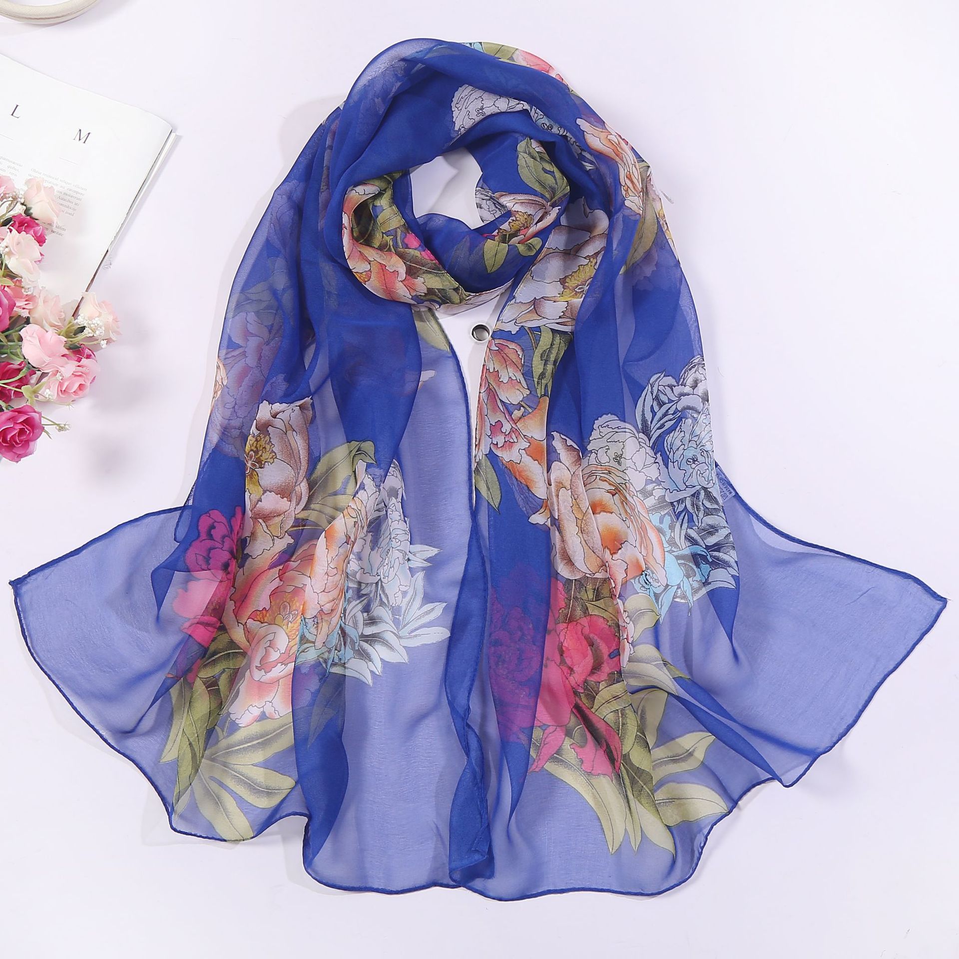 새로운 스카프 여성의 얇은 스카프 도매 Qiaoqi 조커 자외선 차단제 스카프 로터스 패턴 크로스 보더 핫 스카프스토어 가기