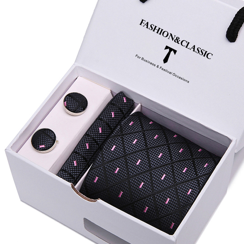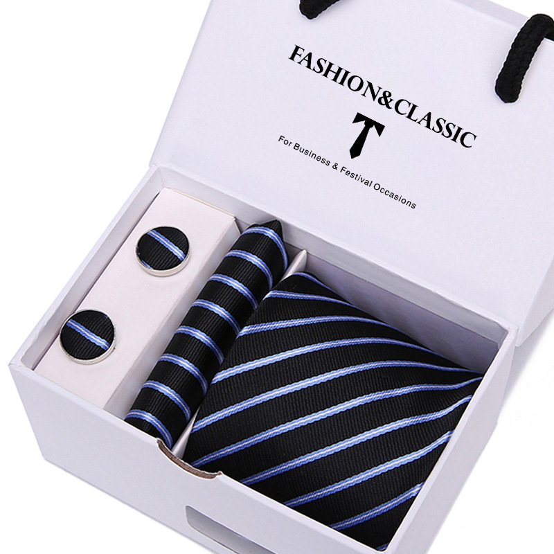 套装包含领带,方巾,袖扣,白色礼盒