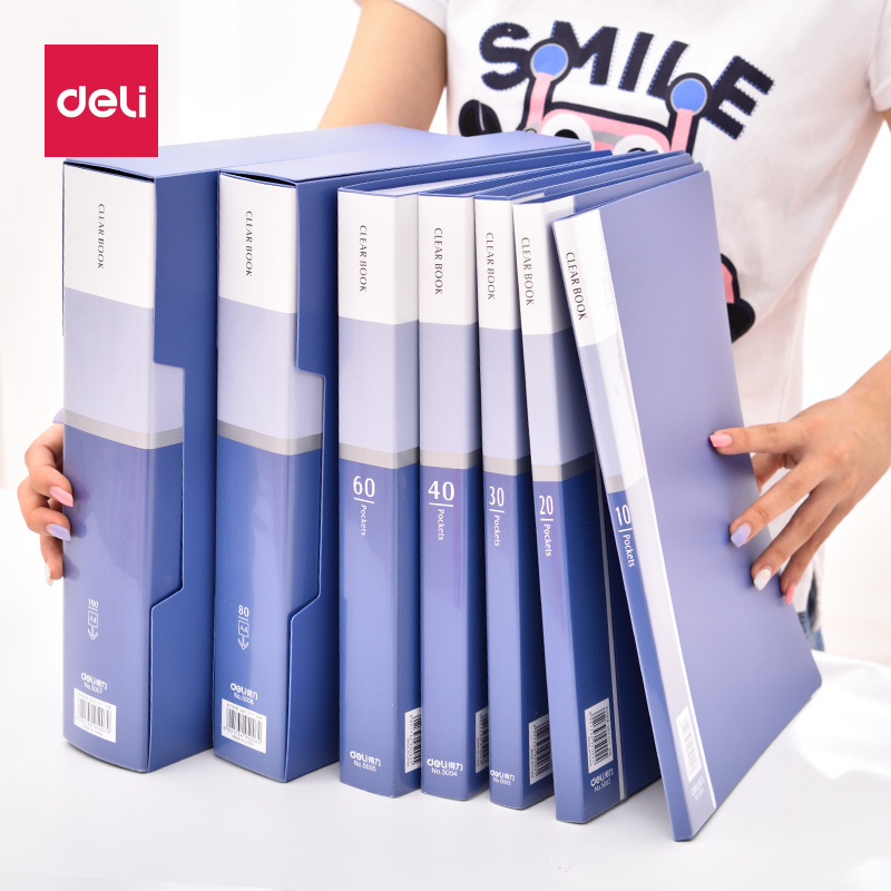 델리 a4 데이터 북 30/60/80 페이지 폴더 투명 다층 삽입 가방 사무실 폴더 파일 북스토어 가기