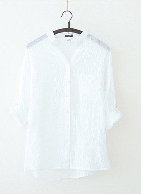 코튼 린넨 셔츠 여성용 여름 자외선 차단제 얇은 린넨 탑 예술적 레트로 7 소매 카디건 여성용 화이트 셔츠 세로 칼라스토어 가기