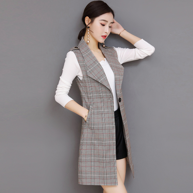 격자 무늬 조끼 여성 중간 길이 2024 봄, 가을 새로운 스타일 슬림 슬리밍 민소매 한국 패션 대형 여성 조끼스토어 가기