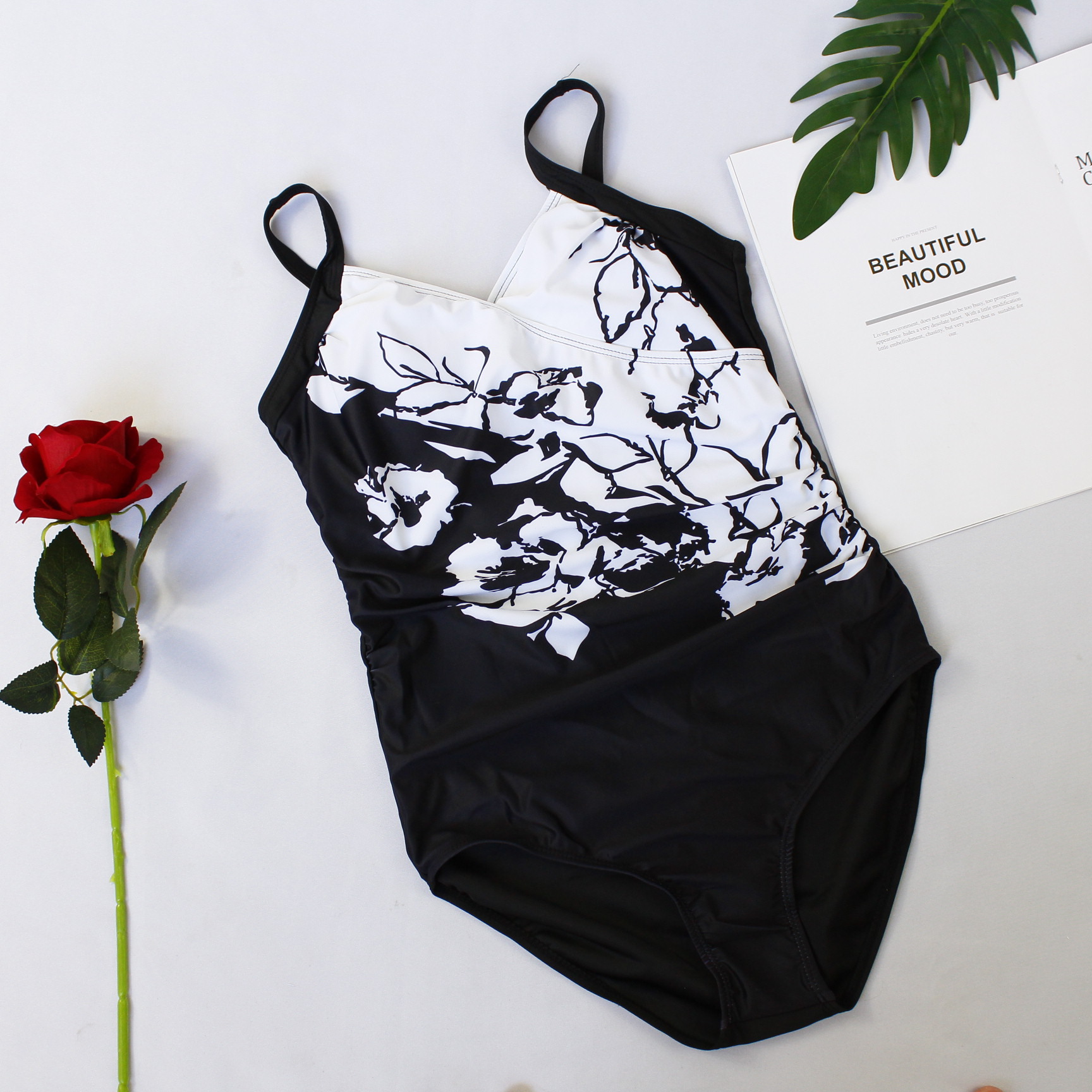 새로운 유럽과 미국의 폭발 단색 흑백 원피스 수영복 여성의 패션 인쇄 오래 된 뚱뚱한 수영복 M-5XL