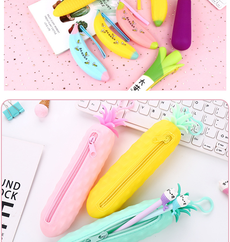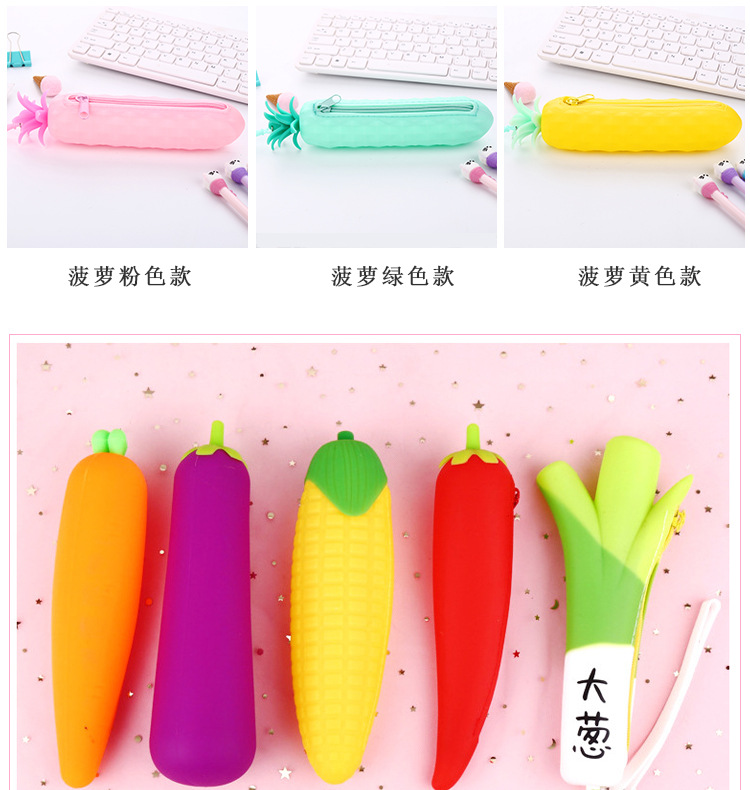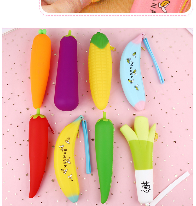 시뮬레이션 만화 실리콘 필통 학생 창작 문구 가방 야채와 과일 연필 가방 보관 가방 도매 맞춤스토어 가기