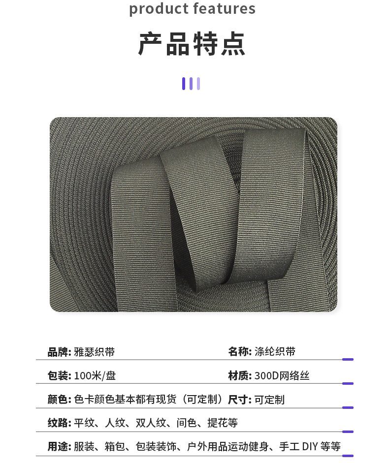 공장 직공급 폴리 에스테르 웨빙 컬러 헤링본 의류 가방 신발과 모자 폴리 에스테르 네트워크 실크 헤밍 벨트 도매