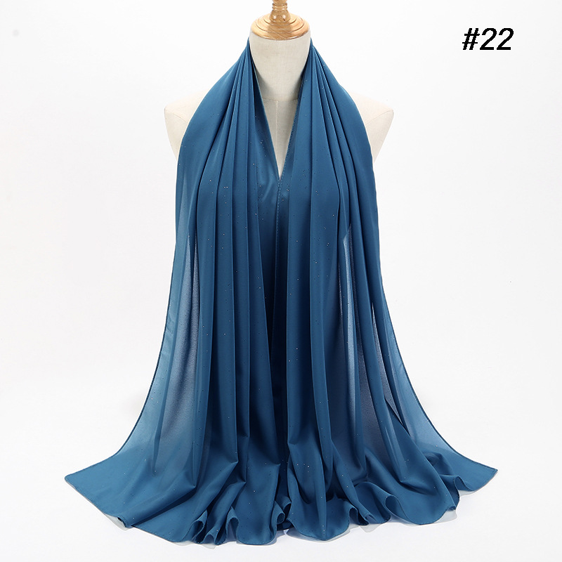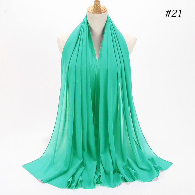 단색 얇은 통기성 히잡 패션 골드 스팽글 펄 쉬폰 터번
