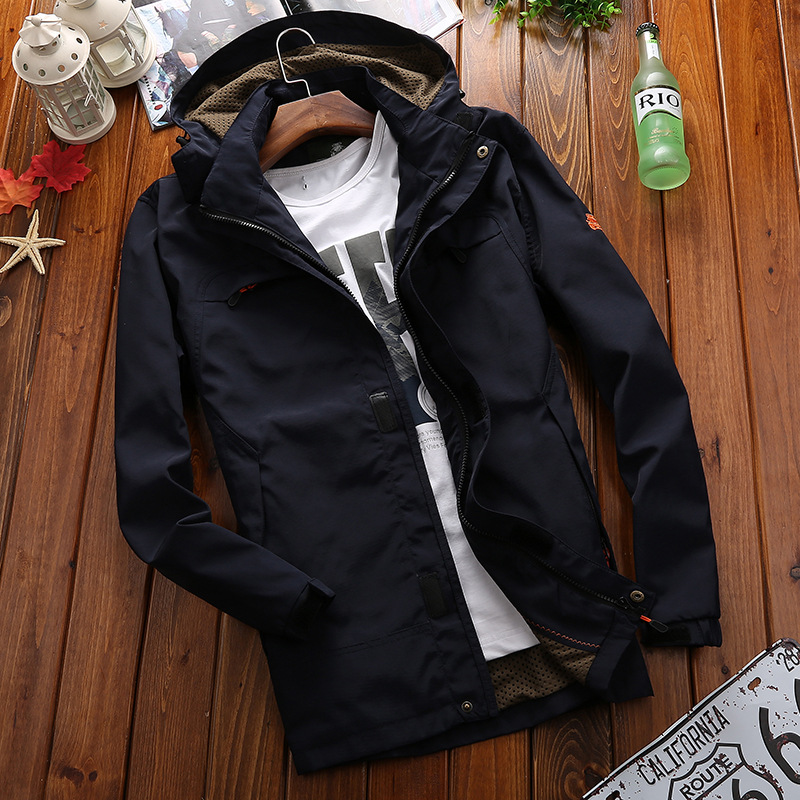 공개 버전 남성 중간 길이 윈드 브레이커 봄과 가을 속건 패브릭 단층 어썰트 코트 남성 코트 배치스토어 가기