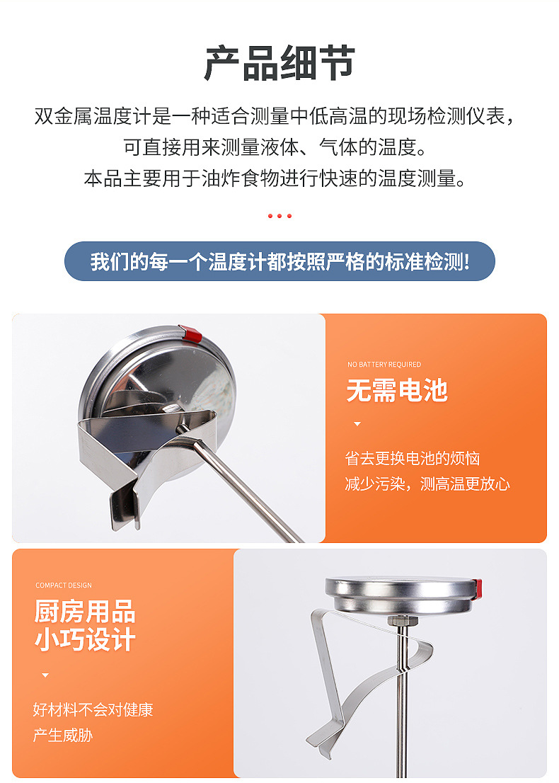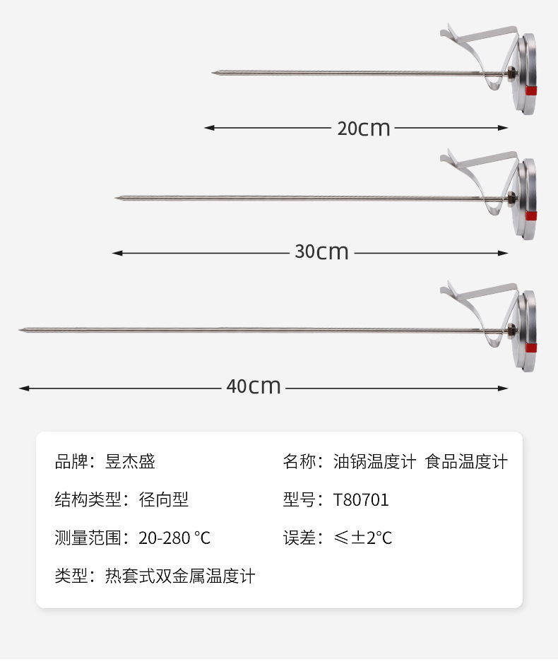 제조업체 도매 금속 튀김기 스테인리스 스틸 포인터 식품 온도계 베이킹 온도계 열가소성 오일 온도계스토어 가기