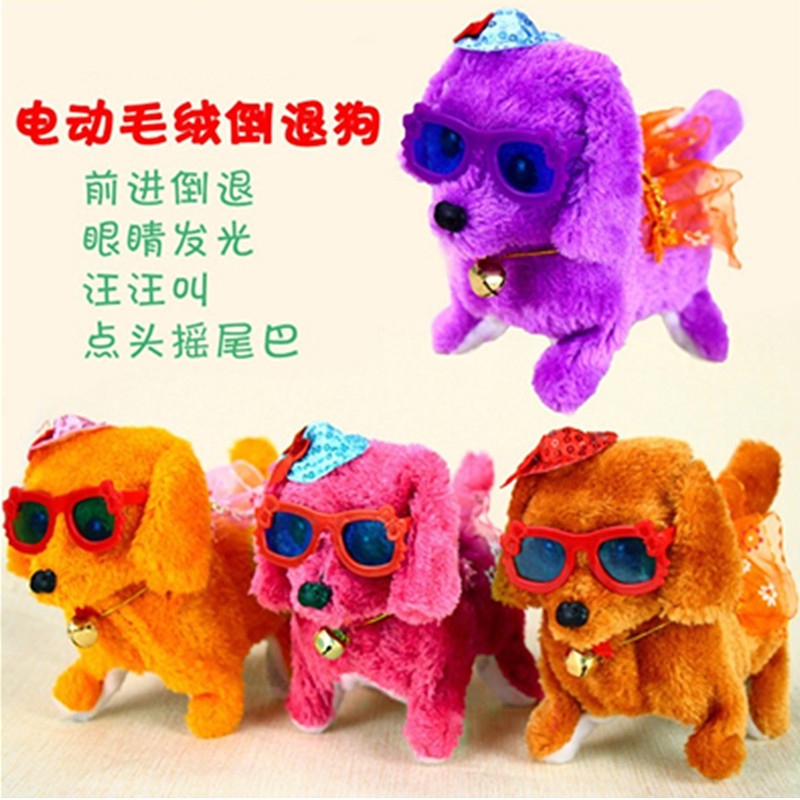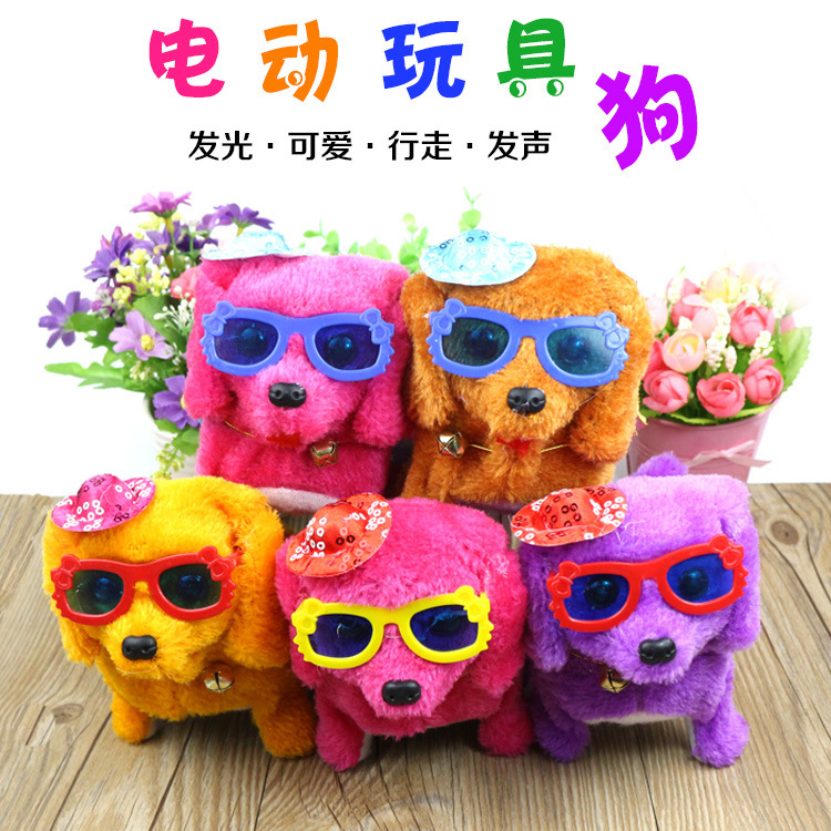장난감 개는 나무 껍질을 벗길 수 있습니다 눈 빛나는 가죽 끈 안경 모자 전기 강아지 다시 개 봉제 장난감스토어 가기