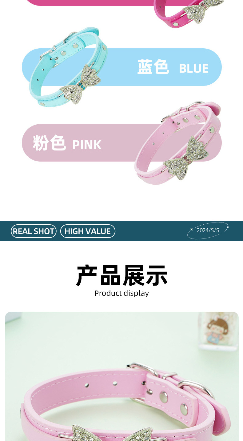 애완 동물 목걸이 아마존 폭발 고양이 턱받이 창조적 인 견인 로프 다이아몬드 활 작은 개 목걸이스토어 가기