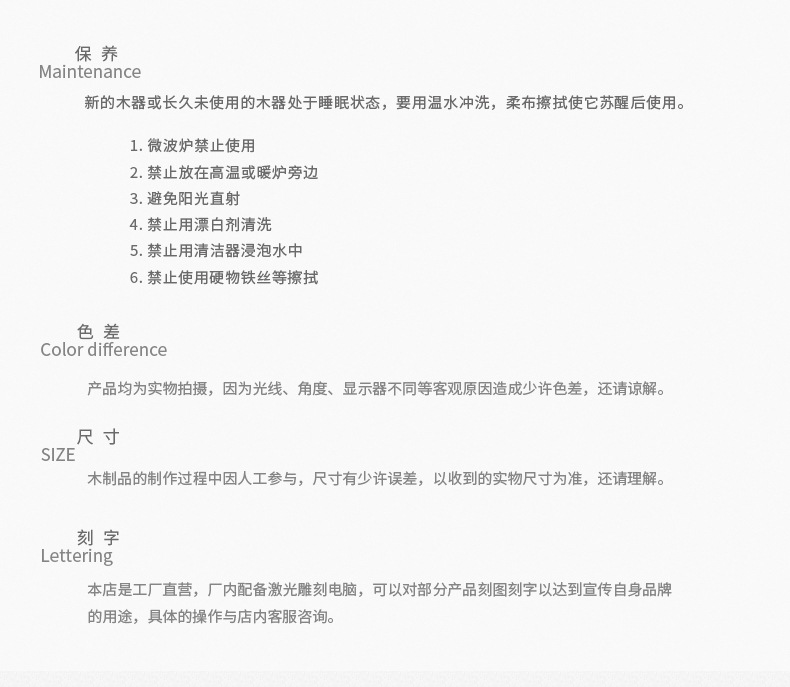 7.无保养蜡的情况下可用食用植物油替代清洁和擦拭。