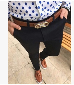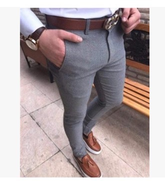 2022 트렌디 한 남성 슬림 핏 세트 바지 청소년 단색 세트 바지 잘린 바지 스키니 비즈니스 캐주얼 바지 바지스토어 가기