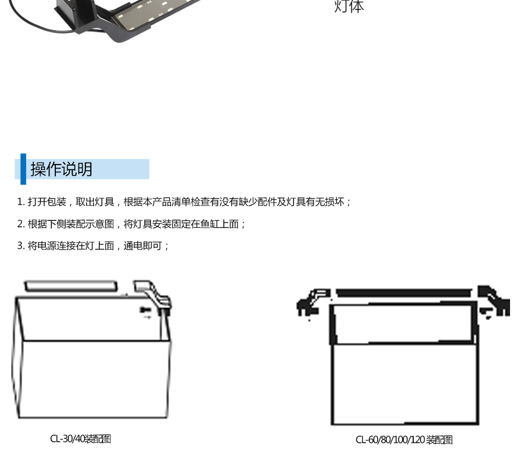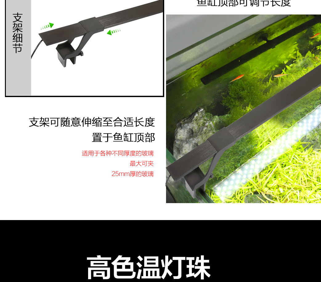 工厂直供超亮LED鱼缸灯冠科防水照明灯全光谱可拆分单支架水草灯