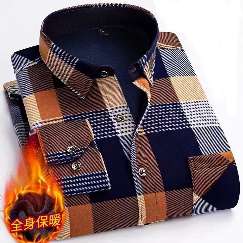 2025 가을 겨울 남성용 두꺼운 플리스 셔츠 따뜻한 체크무늬 긴팔 셔츠 남성복 고급스러운 신축성 있는 밀크 실크스토어 가기