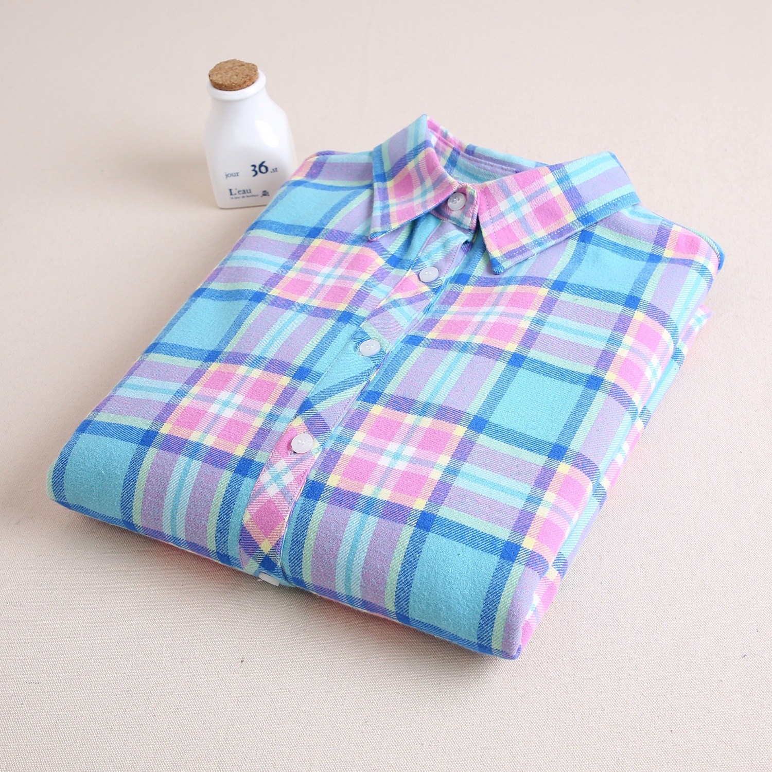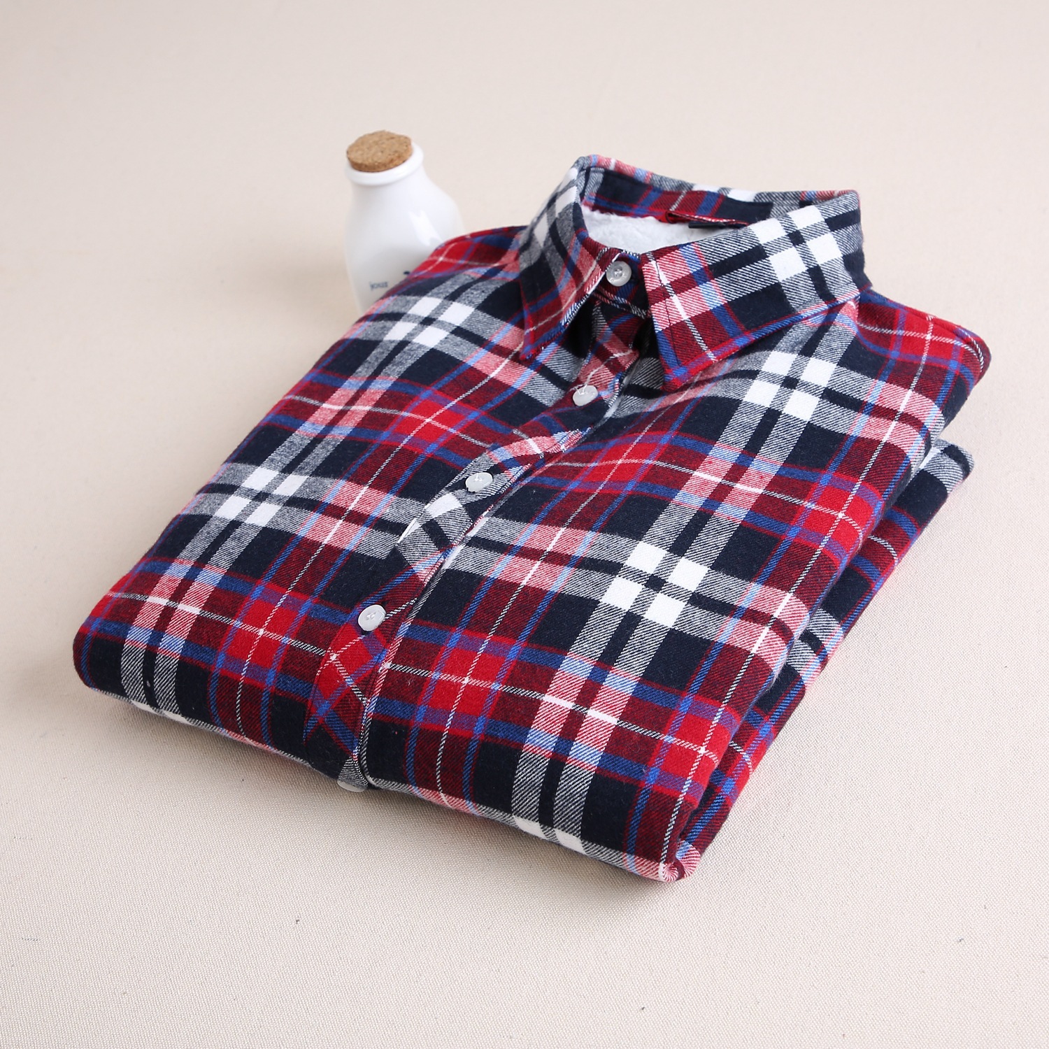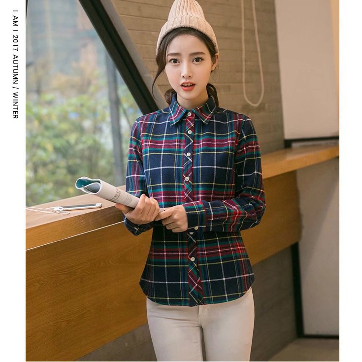 공장 직접 겨울 폭발 기모 두꺼운 따뜻한 격자 무늬 셔츠 여성 학생 영국 스타일 모든 일치 기본 셔츠