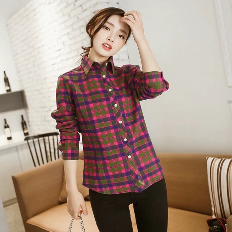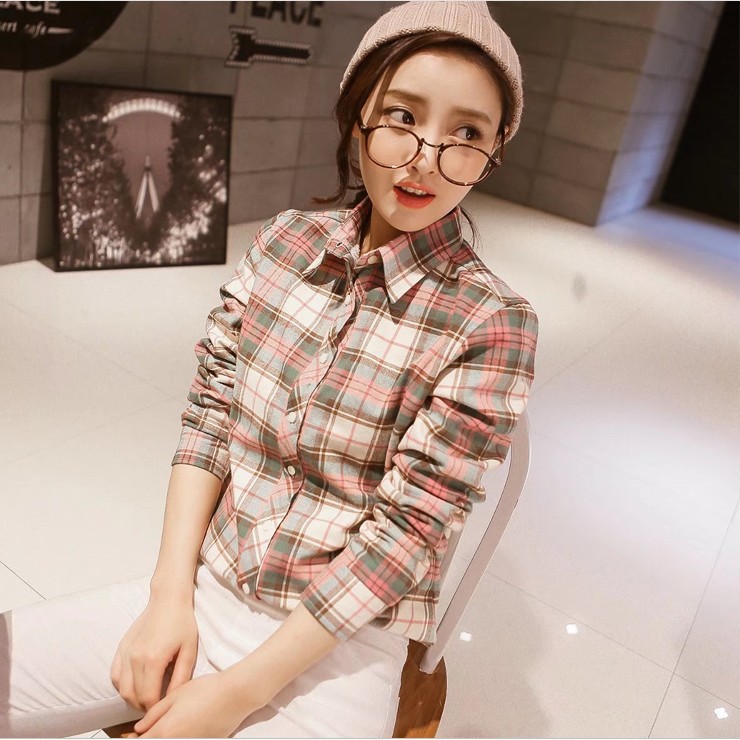공장 직접 겨울 폭발 기모 두꺼운 따뜻한 격자 무늬 셔츠 여성 학생 영국 스타일 모든 일치 기본 셔츠스토어 가기