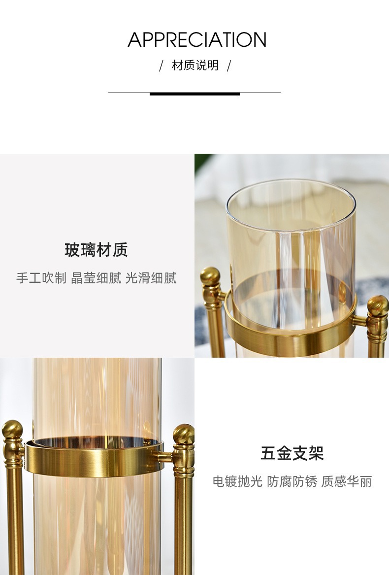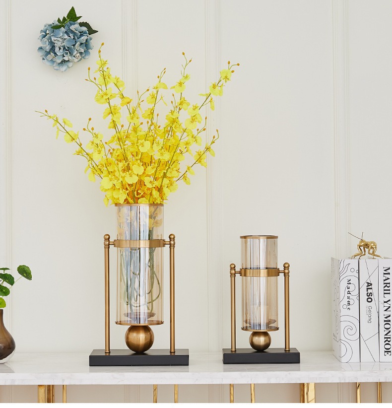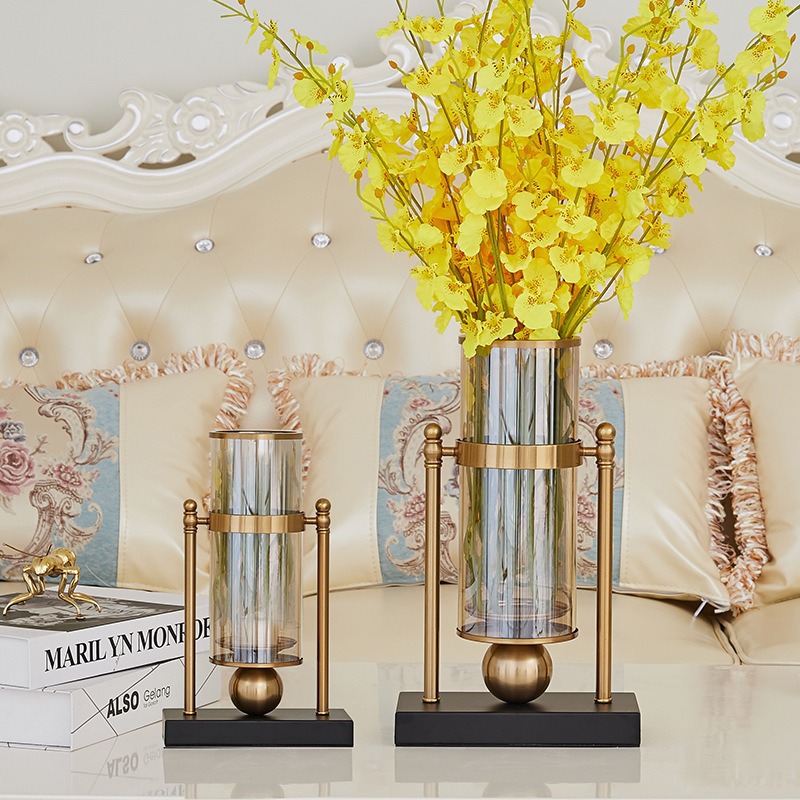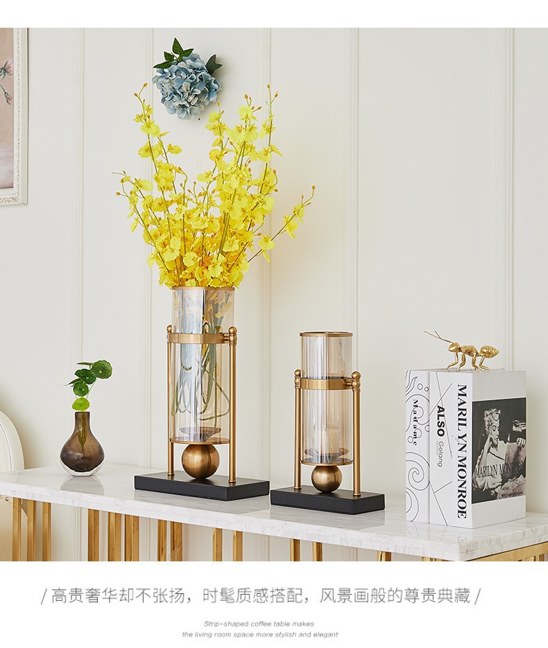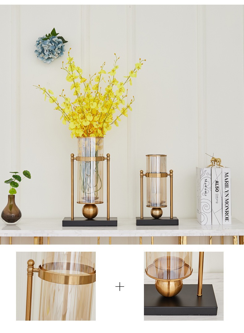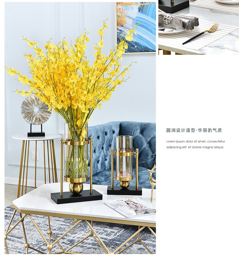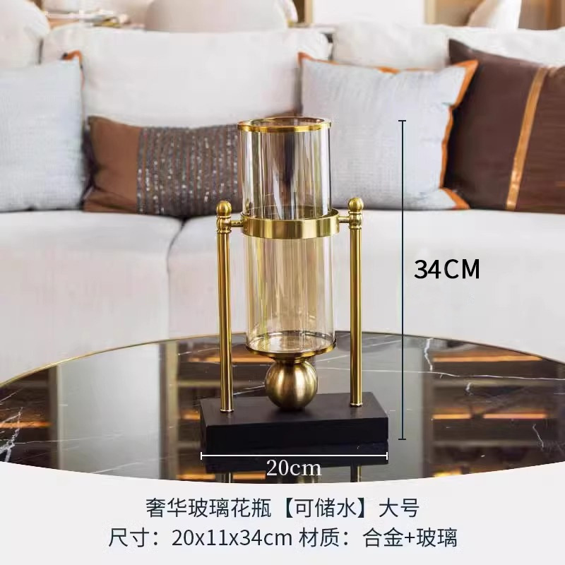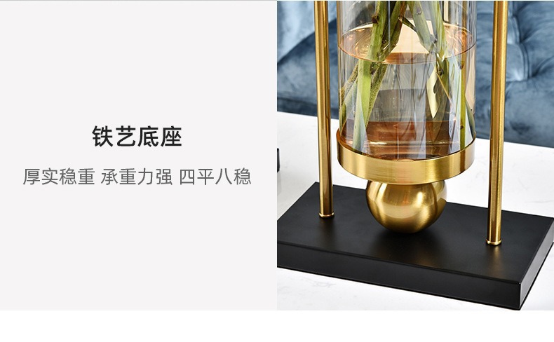 국경 간 가정용 가벼운 고급 유리 금속 꽃병 장식품 고급 가정용 거실 미니 장식 공예품 도매스토어 가기