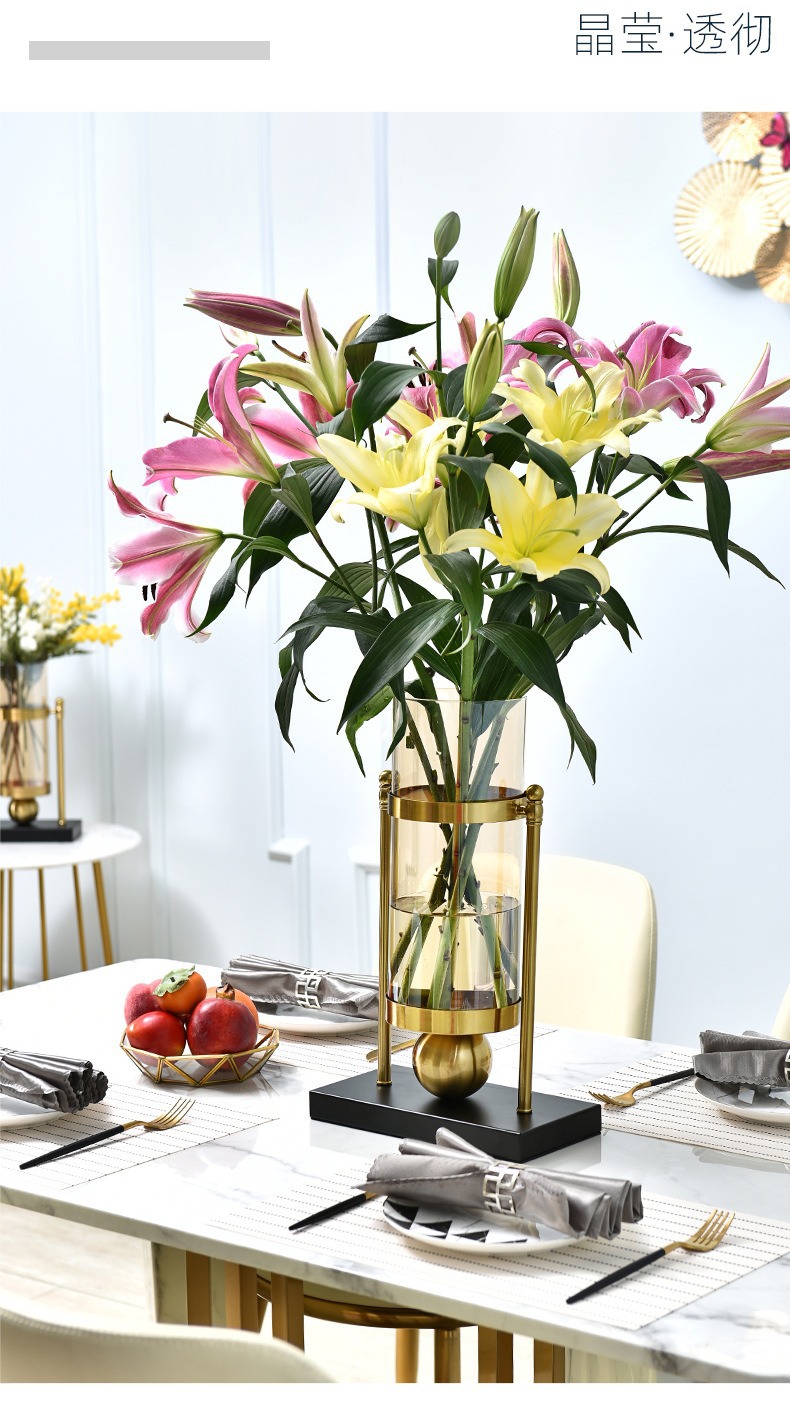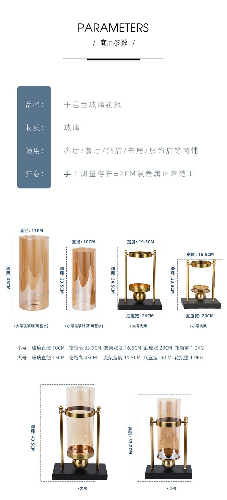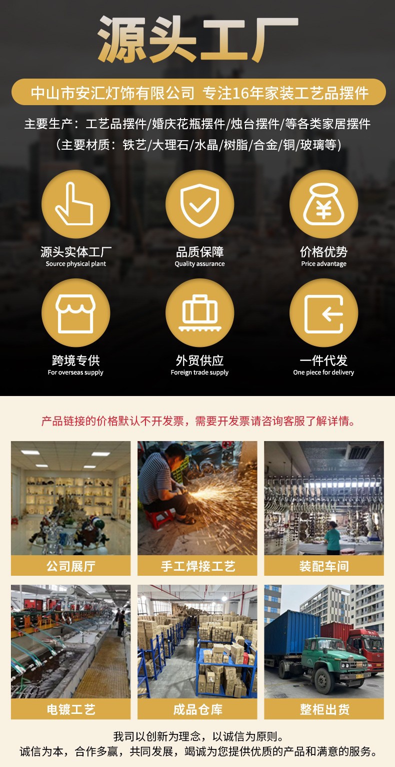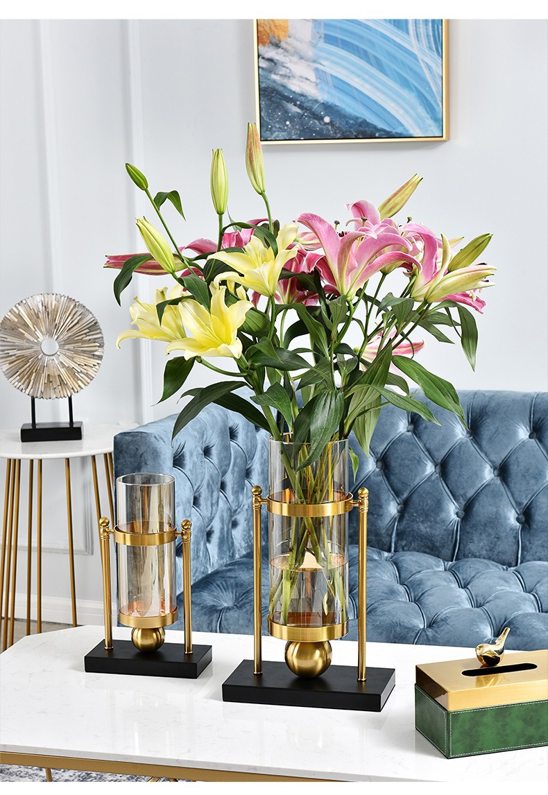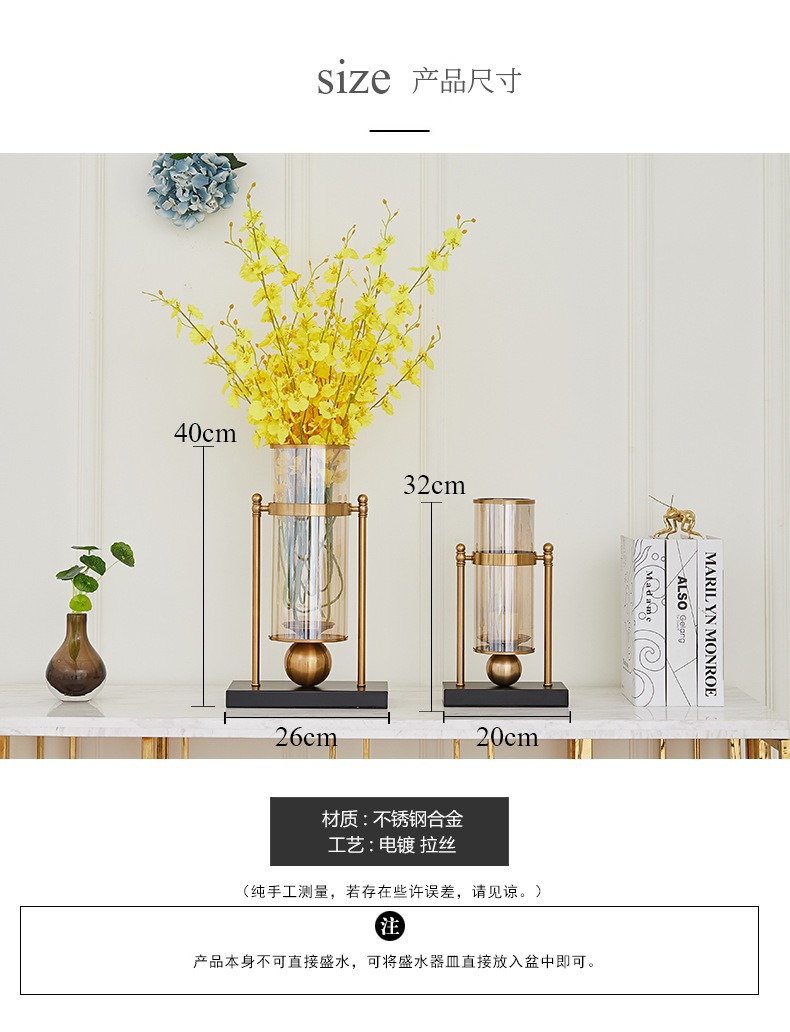 국경 간 가정용 가벼운 고급 유리 금속 꽃병 장식품 고급 가정용 거실 미니 장식 공예품 도매스토어 가기