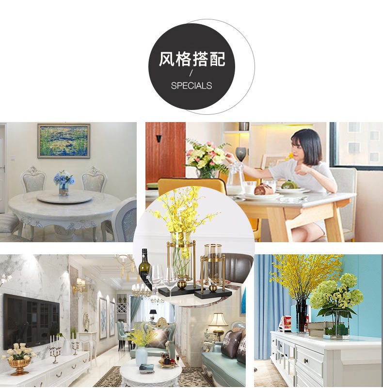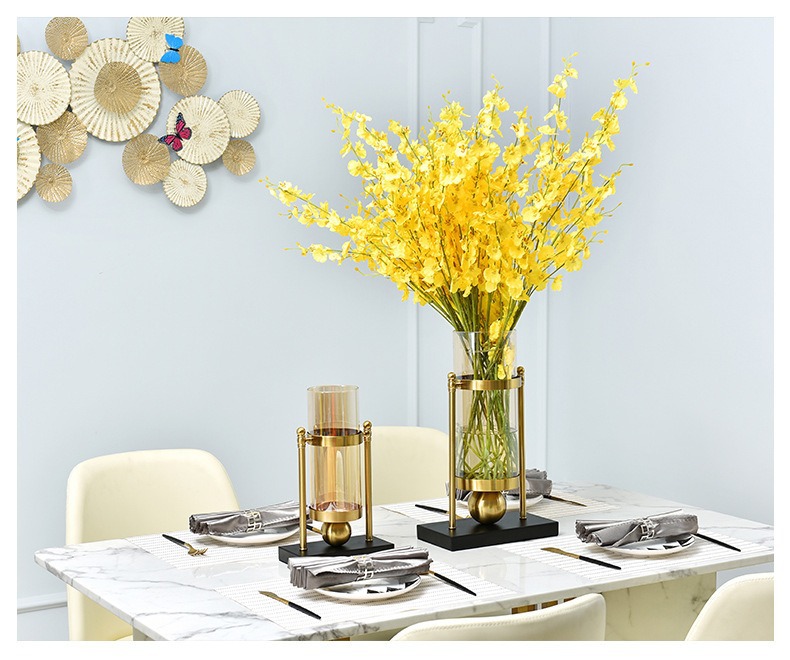 국경 간 가정용 가벼운 고급 유리 금속 꽃병 장식품 고급 가정용 거실 미니 장식 공예품 도매