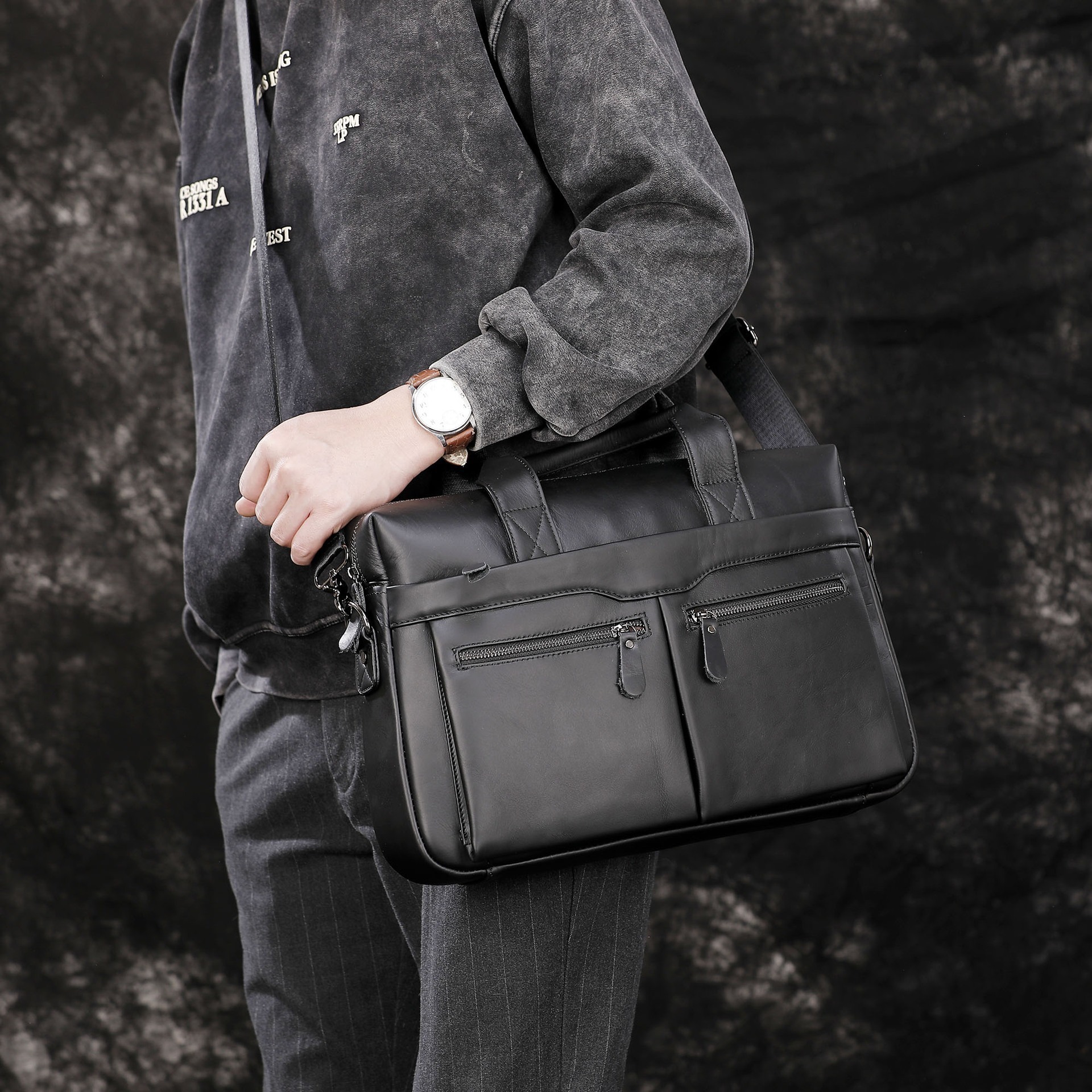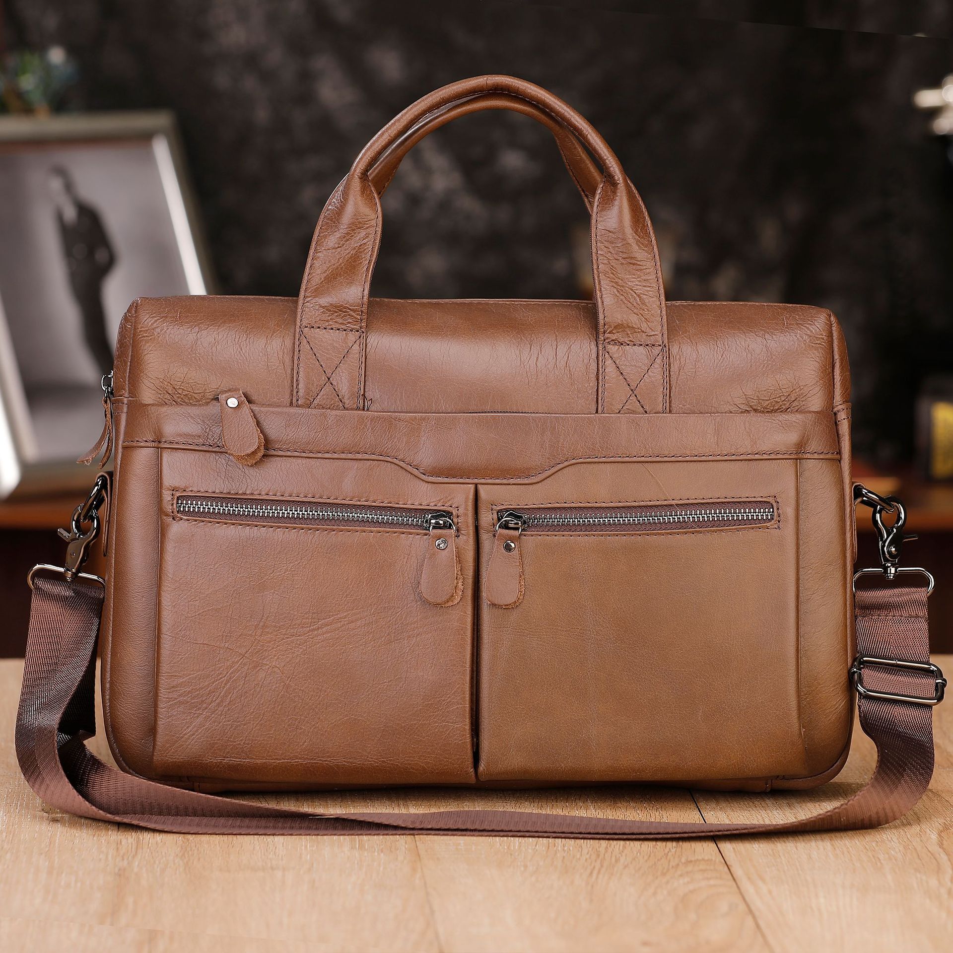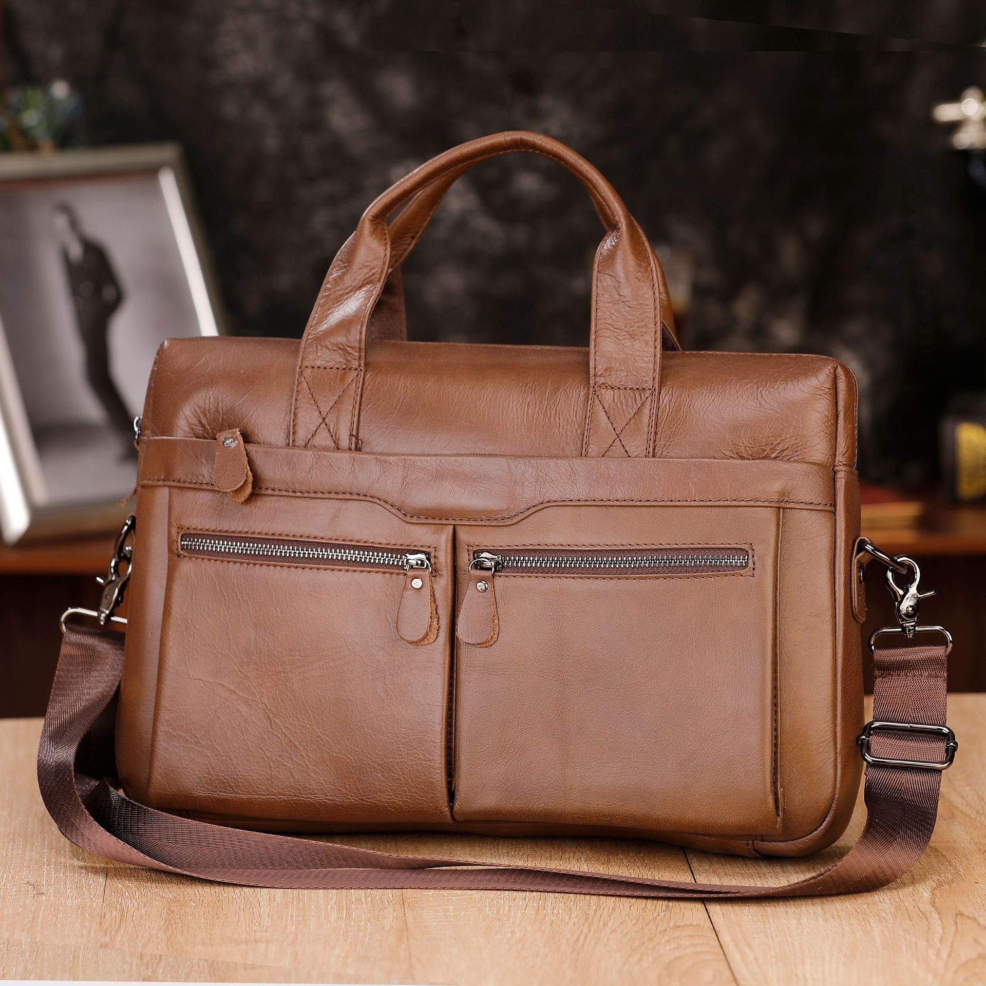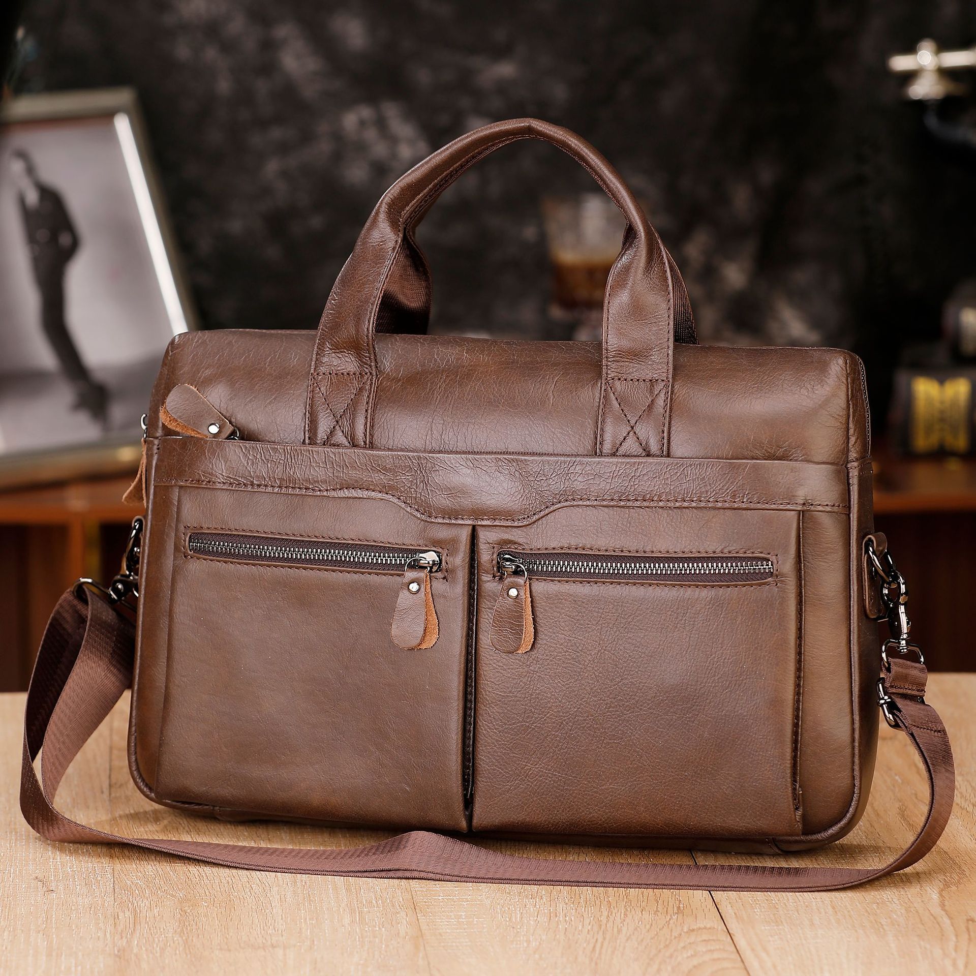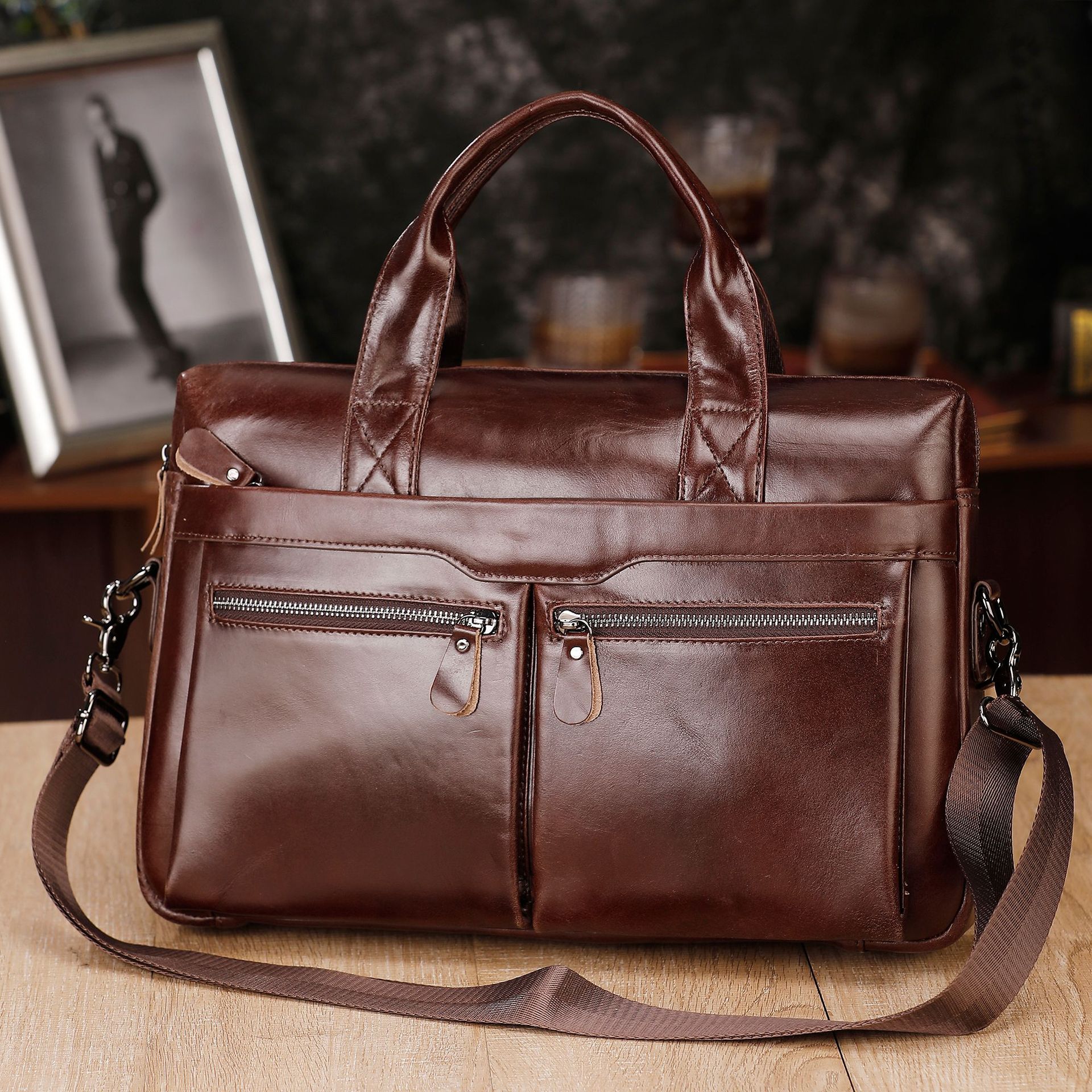 새로운 남성 가방 정품 가죽 남성 핸드백 소 가죽 컴퓨터 가방 15inch 비즈니스 대용량 서류 가방 드롭 배송