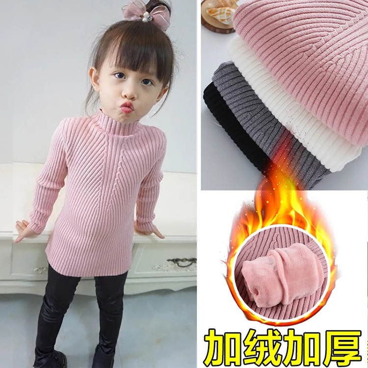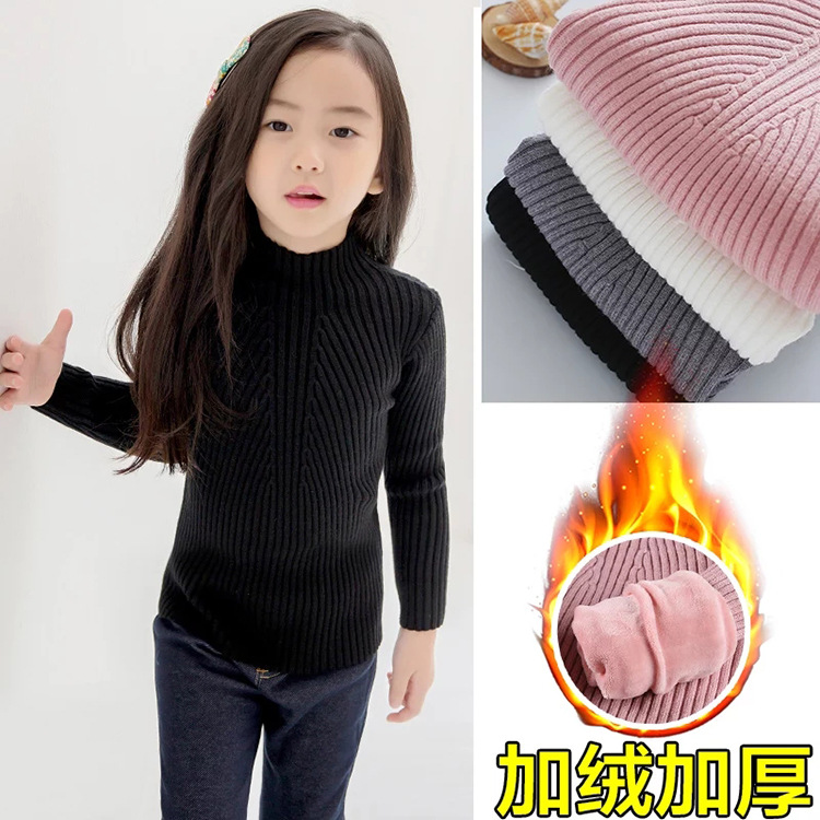 여아 스웨터 중간 어린이 하이 넥 터틀넥 긴 소매 두꺼운 따뜻한 한국 니트 스웨터 공장 콘센트