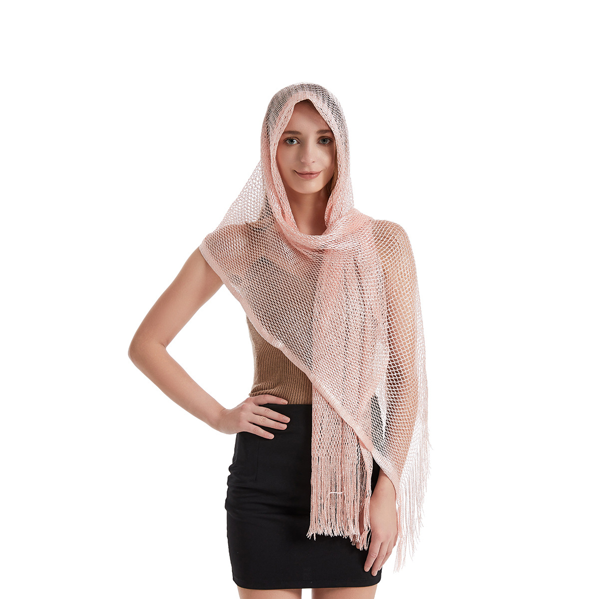 봄과 여름 밝은 실크 중공 그물 술 목도리 여성용 폴리 에스테르 스카프 다목적 터번 유럽과 미국 새로운 얇은 목도리 제조 업체