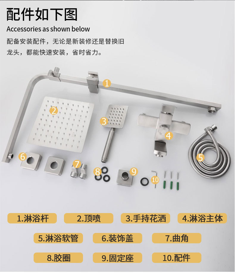 304 스테인레스 스틸 샤워 헤드, 과급 샤워 헤드, 휴대용 욕실 혼합 밸브, 다기능 샤워 헤드 세트의 완전한 세트