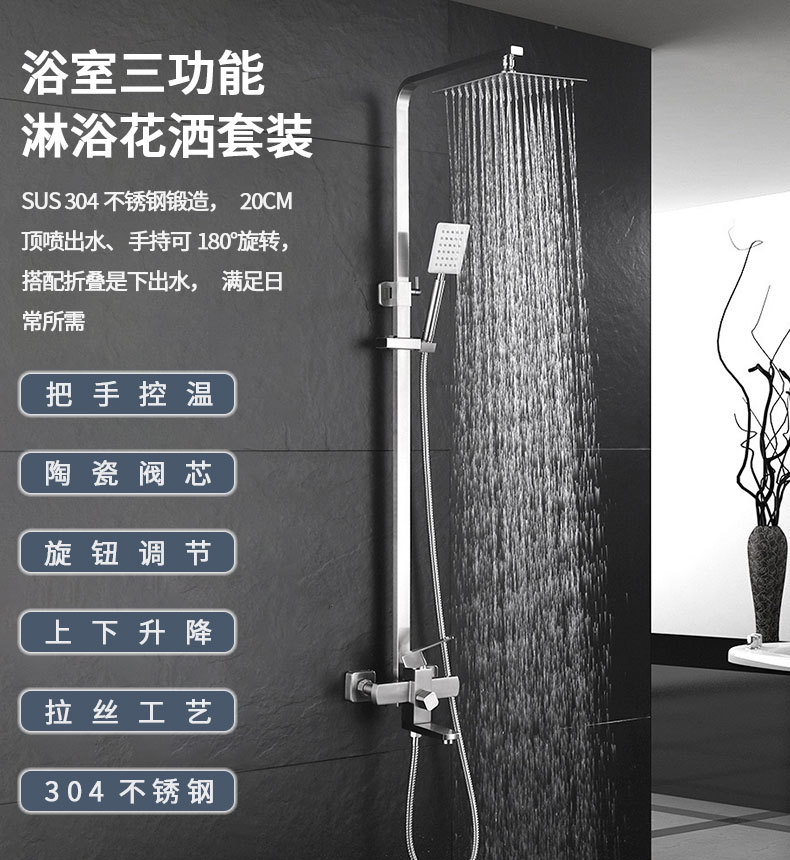 304 스테인레스 스틸 샤워 헤드, 과급 샤워 헤드, 휴대용 욕실 혼합 밸브, 다기능 샤워 헤드 세트의 완전한 세트스토어 가기