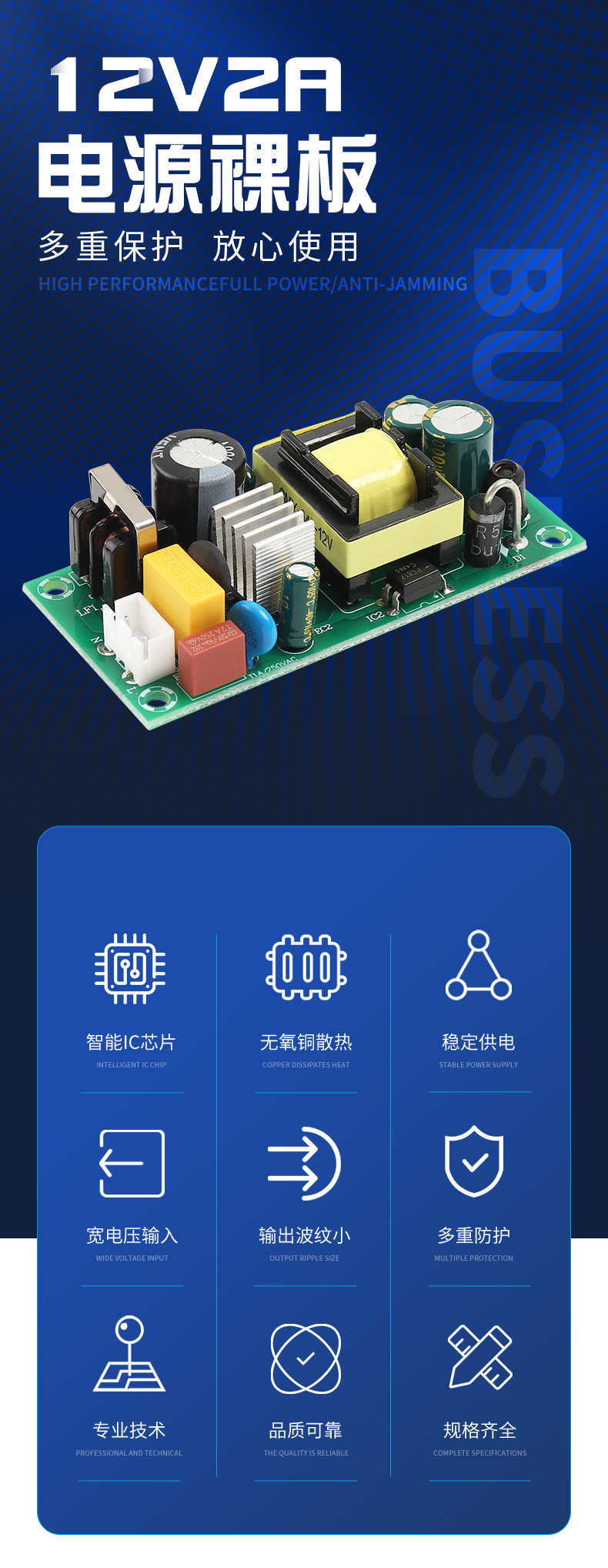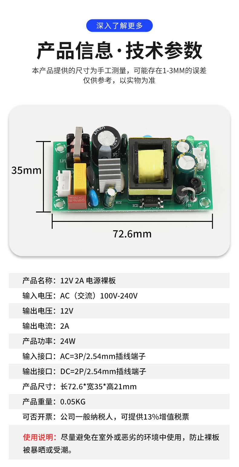 12V2A 전원 모듈 베어보드 절연 전원 공급 장치 220V AC를 DC 12V2A 라이트 스트립에 공급