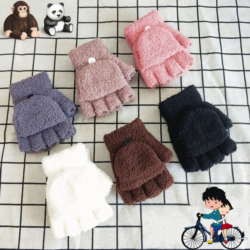 만화 의상 어린이 겨울 장갑 반손가락 플립업 아기 장갑 귀여운 남녀 학생용 공장 직배송