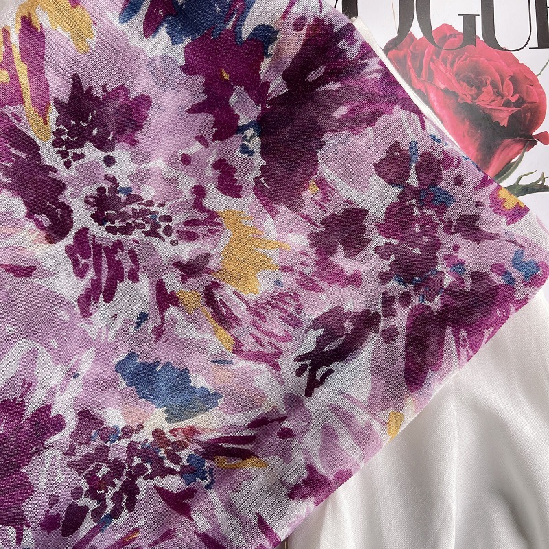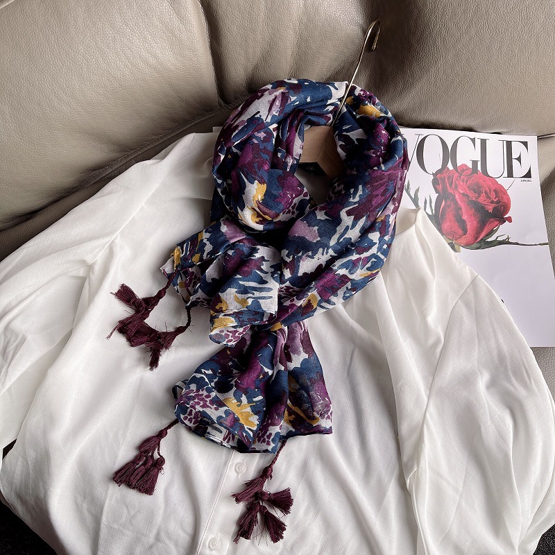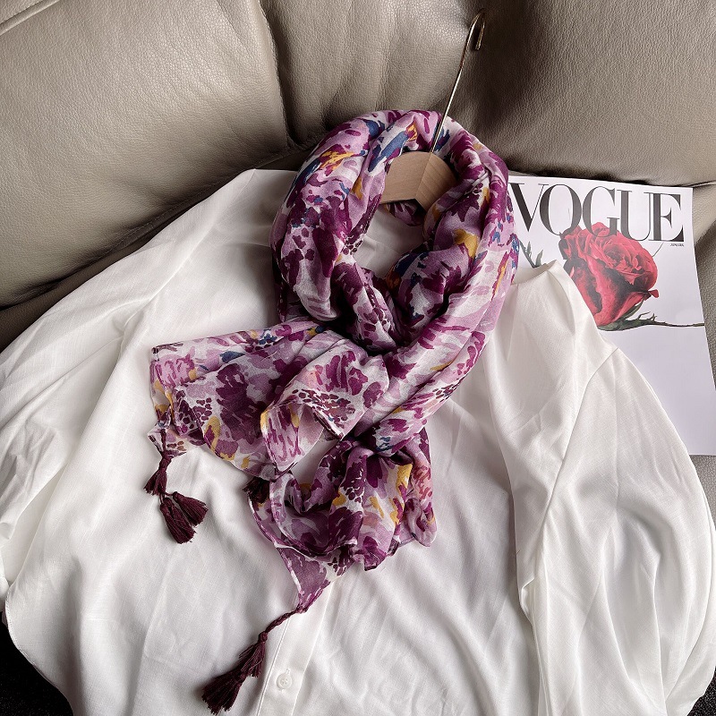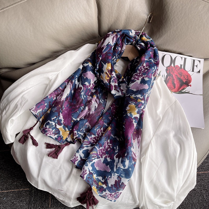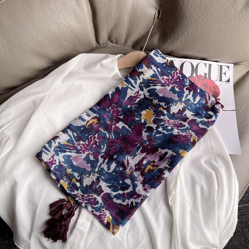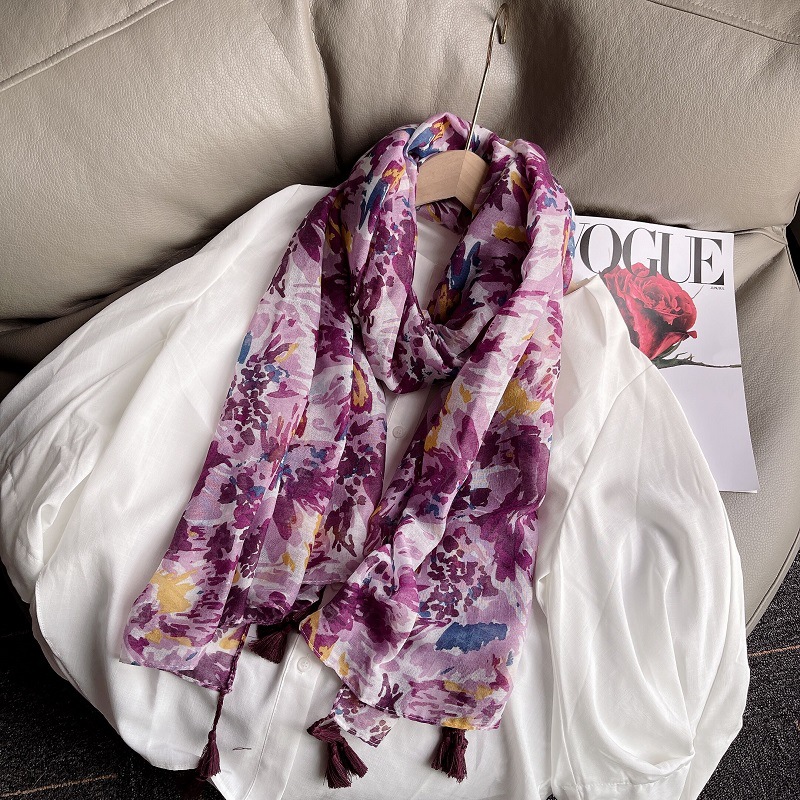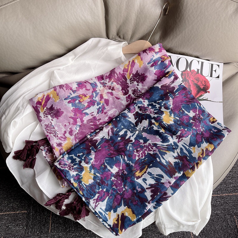 바이올렛 아트 페인팅 스타일 면과 린넨 스카프 여성용 2022 한국 스타일 아트 인쇄 봄과 여름 실크 스카프 여행 숄