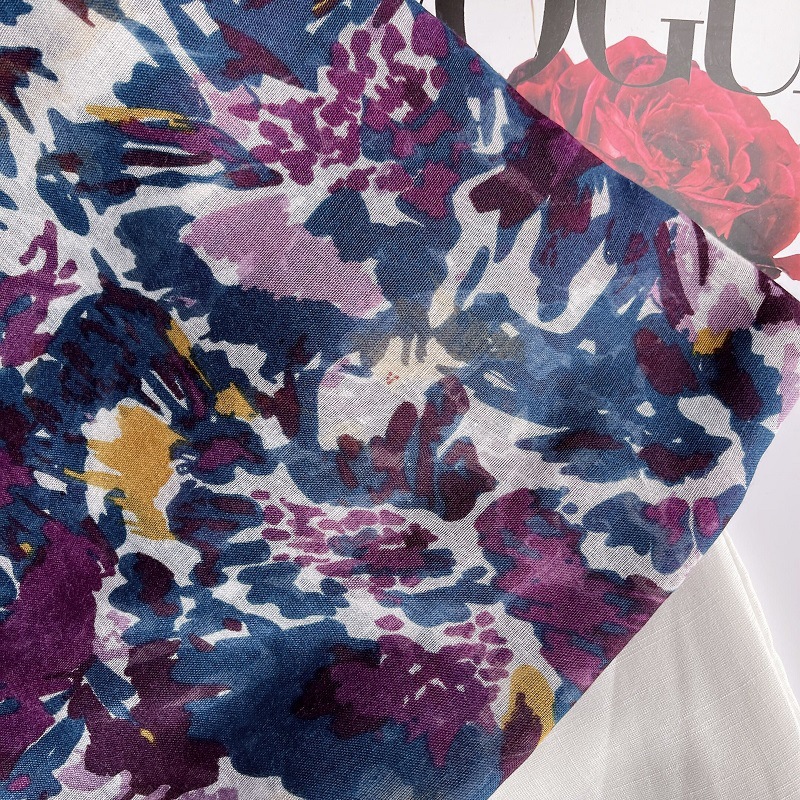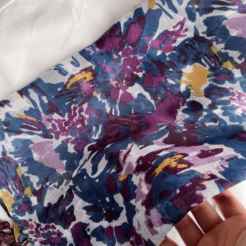 바이올렛 아트 페인팅 스타일 면과 린넨 스카프 여성용 2022 한국 스타일 아트 인쇄 봄과 여름 실크 스카프 여행 숄스토어 가기