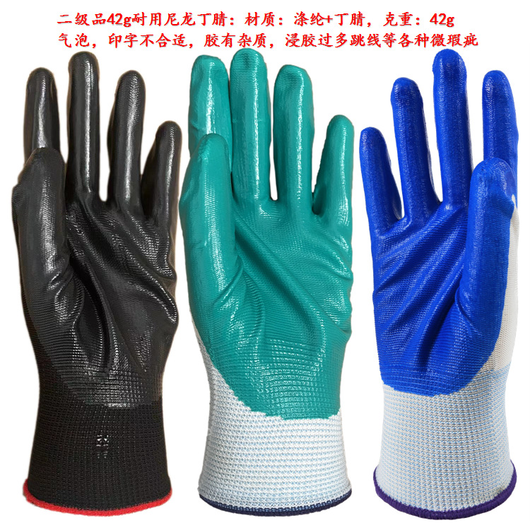 下图是二级特价处理耐用尼龙丁腈属于特价处理的,有各种微瑕疵,气泡,各种代加工印字不合适的,浸胶过多,胶有杂质,针织手套有小孔,跳针等各种微瑕疵,不影响使用,高性价比,介意者勿拍