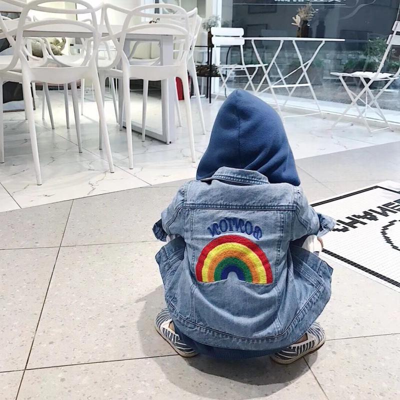 소년과 소녀 데님 코트 무지개 자수 재킷 재킷 21 가을 새로운 대외 무역 아동 의류 2-7 세스토어 가기