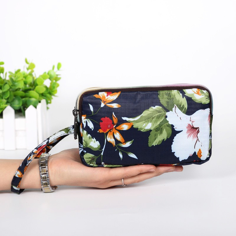 동전 지갑 여성용 긴 패브릭 클러치 3 단 지퍼 여성 지갑 대용량 휴대 전화 가방스토어 가기