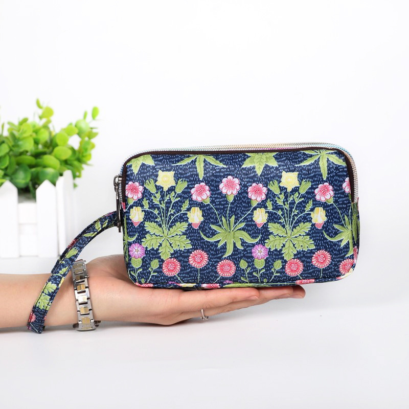 容量可放6.4寸以下大屏手机和百元大钞。三层大容量多功能防水 同时可放 充电宝、6.4手机 钥匙 零钱 卡 首饰 口红 防晒霜....等等 很方便 拿在手里也很时尚哦!