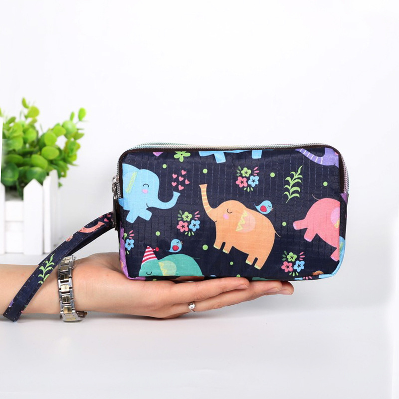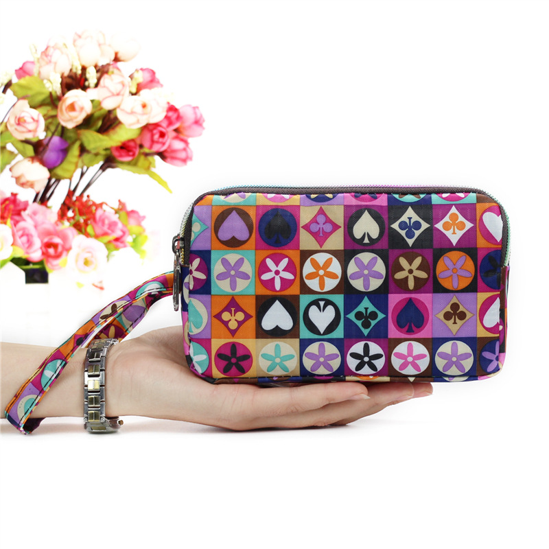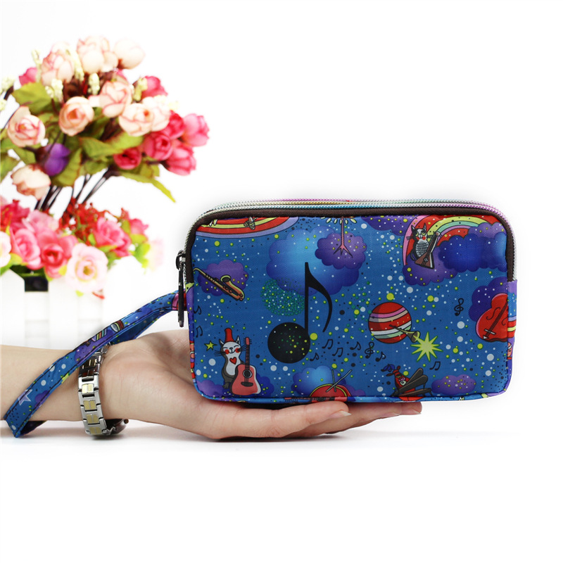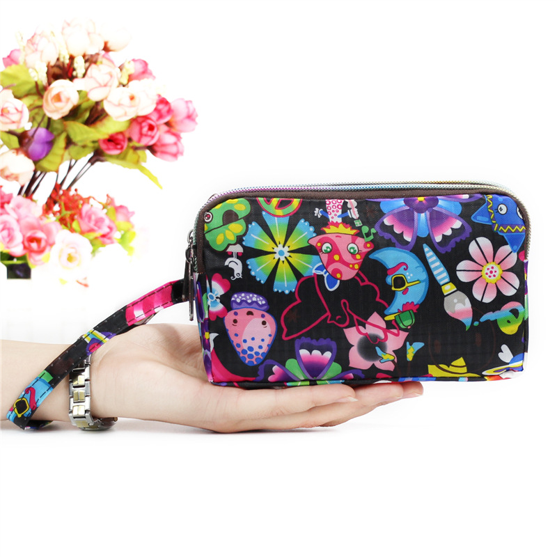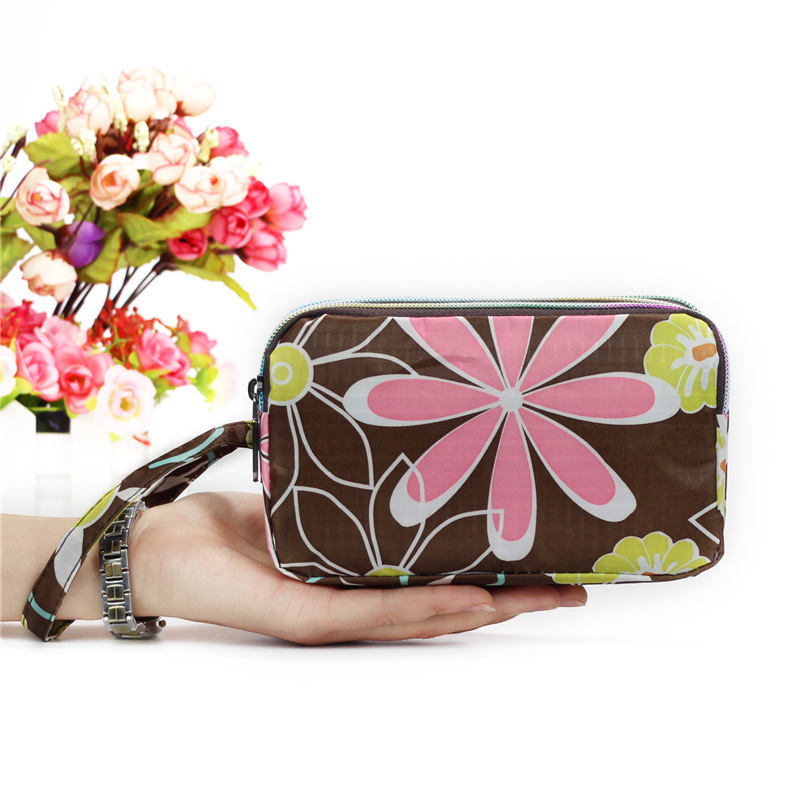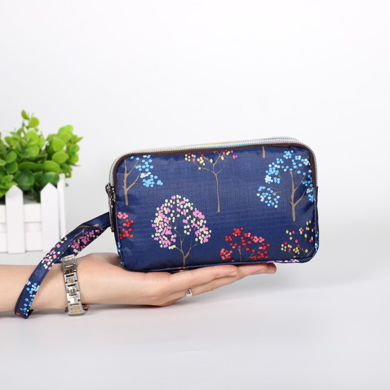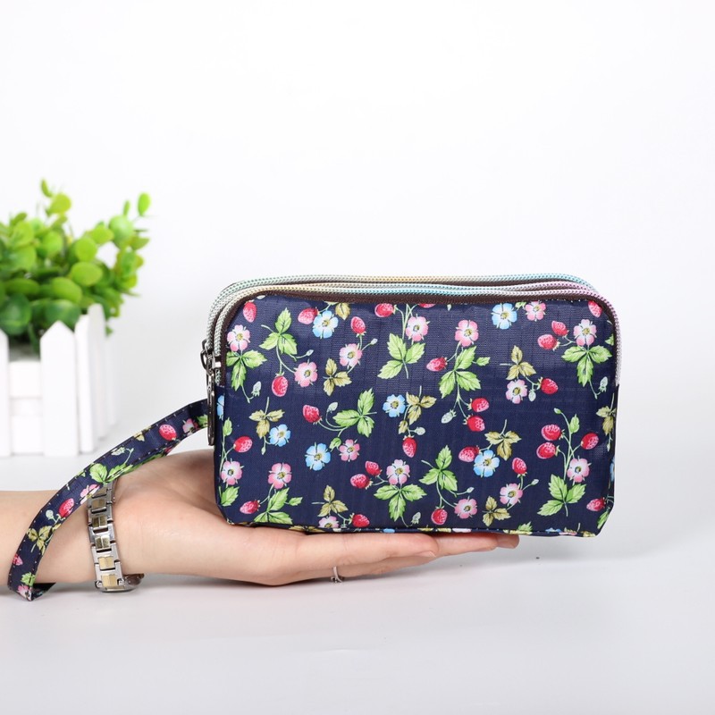 동전 지갑 여성용 긴 패브릭 클러치 3 단 지퍼 여성 지갑 대용량 휴대 전화 가방