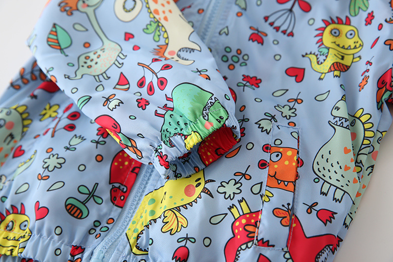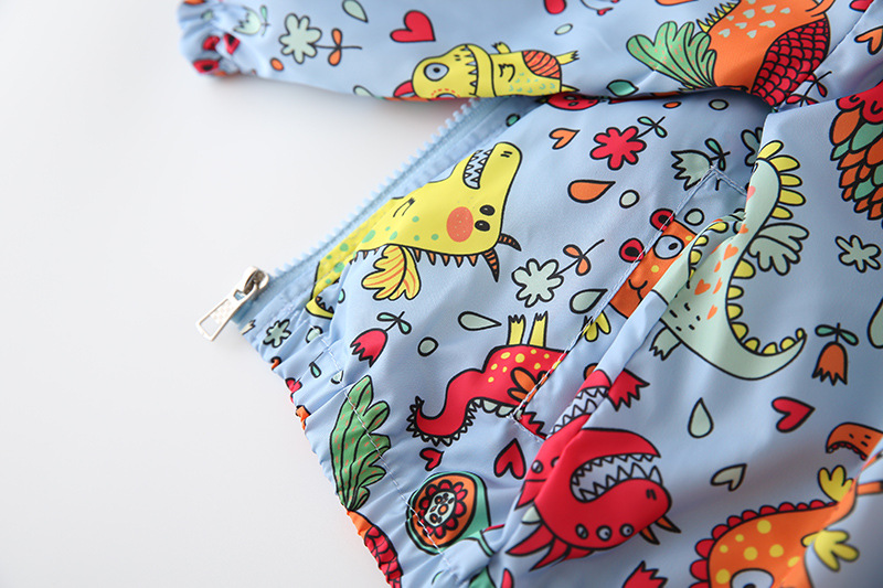 2025 봄과 가을 새로운 아동 의류 유럽과 미국 스타일의 소년 전체 인쇄 공룡 재킷 만화 방풍 재킷 재킷