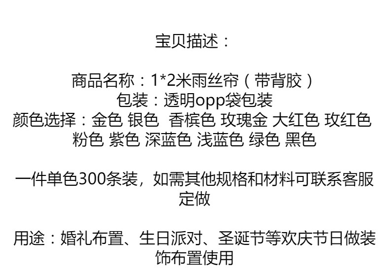 크로스 보더 1*2 미터 비 실크 커튼 생일 파티 장식 풍선 배경 벽 레이아웃 황금 빛 비 실크 커튼스토어 가기