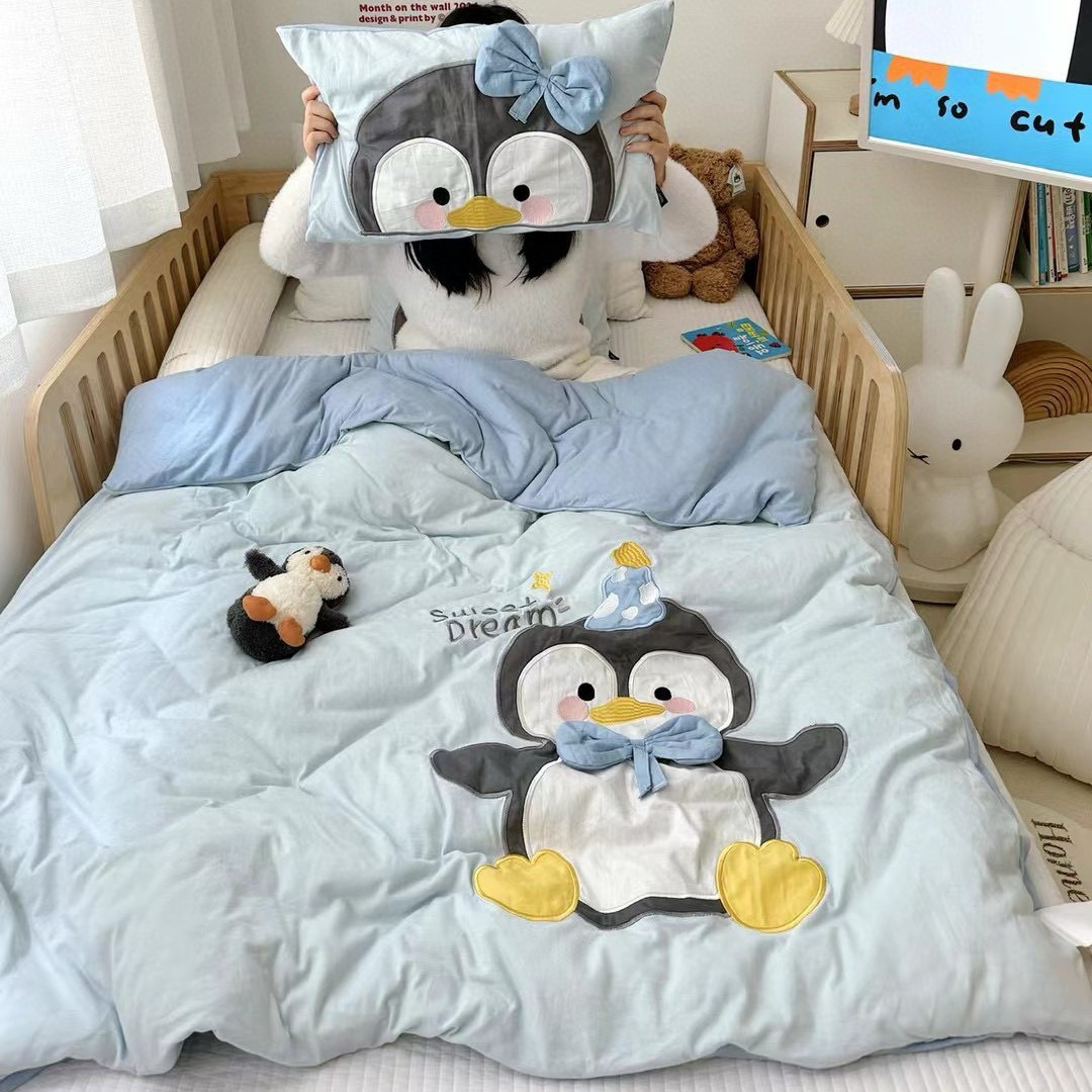클래스 A 면 부드러운 니트 면 어린이 봄과 가을 이불 겨울 이불 분리 및 빨 만화 자수 아기 낮잠 이불스토어 가기