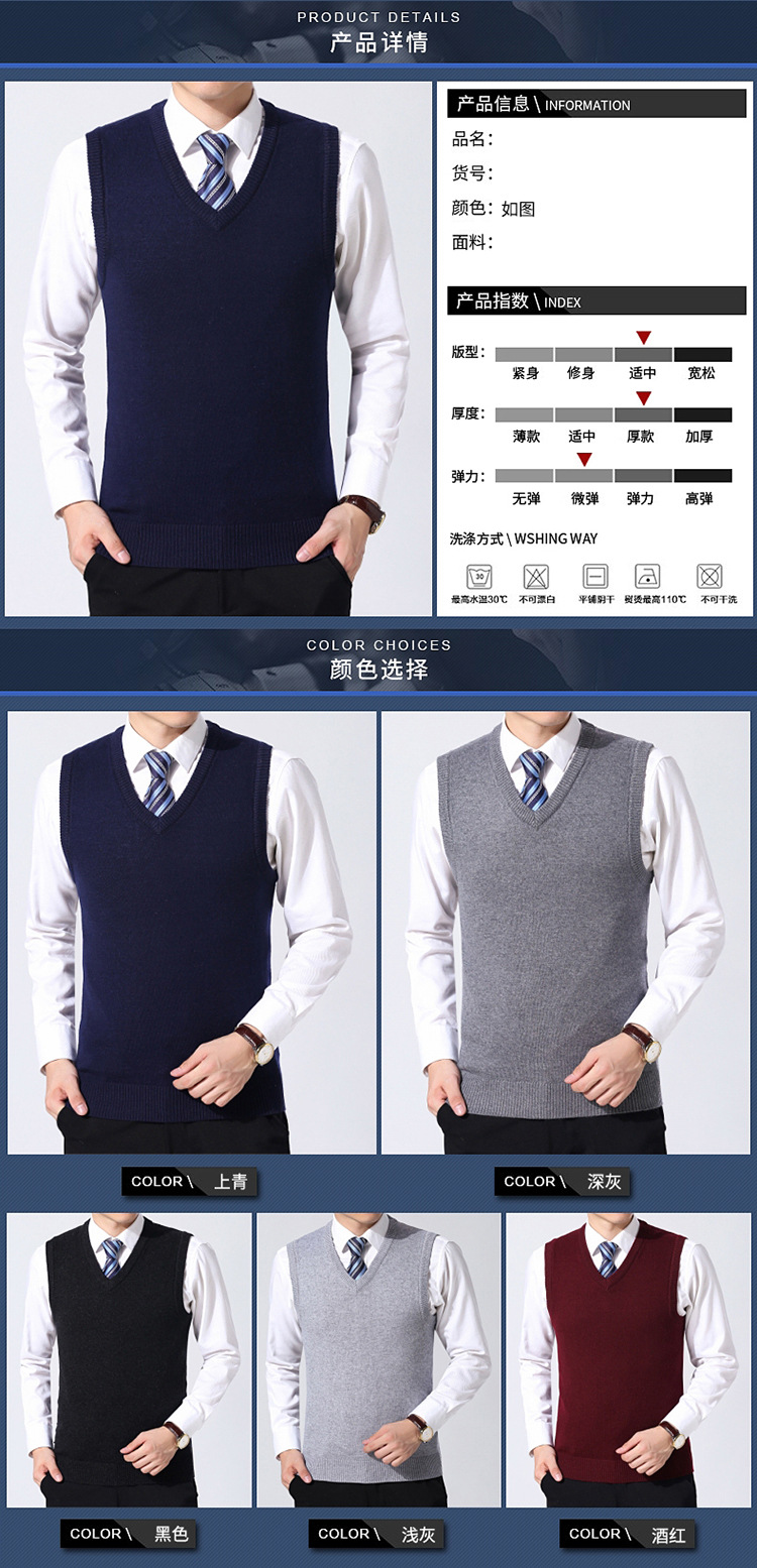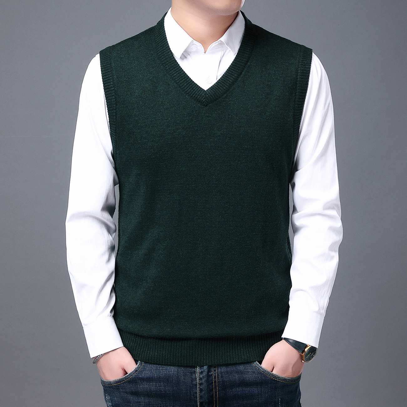 크로스보더 조끼 남성 스웨터 니트 조끼 단색 울 비즈니스 남성 조끼 v 넥 중년 아빠 착용스토어 가기