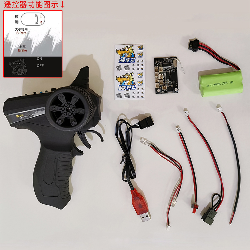 功能描述:2.4G,遥控2通,前车灯,前进后退,左转右转。使用时间40分钟左右(四轮驱动) 电池:车身7.4V 500MAH锂电池,遥控器3V(不配2*AA) 产品尺寸:34.5*14*15.5CM 彩盒尺寸:45*16*20.5CM 重量:1.4KGS 装箱量:12只/箱 外箱规格:67X47X64CM 转向系统:17g舵机(转向灵敏精准 可微调);遥控距离:约65米;电机:碳刷电机; 动力波箱:高扭力波箱(具有更好攀爬能力);齿轮:CNC铜齿轮 |