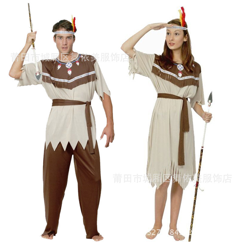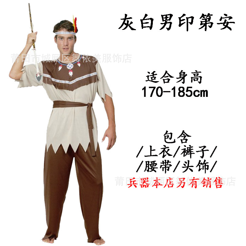 할로윈 의상 성인 소년과 소녀 회색 인도 의류 원주민 야만인 의상 머리카락 세대스토어 가기